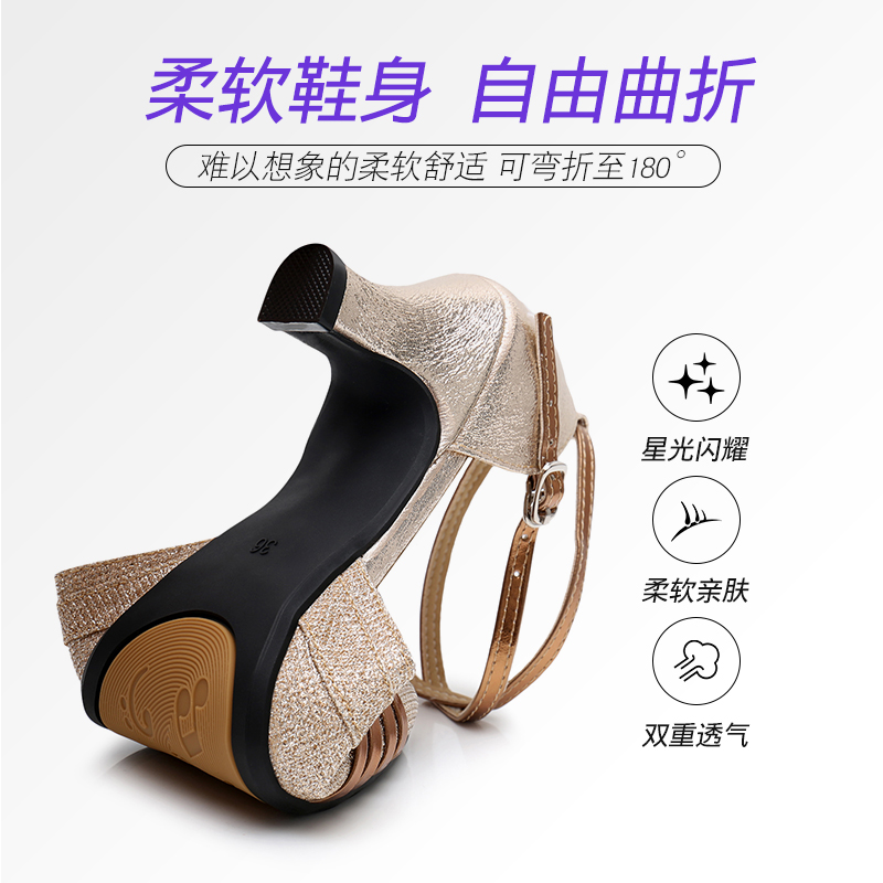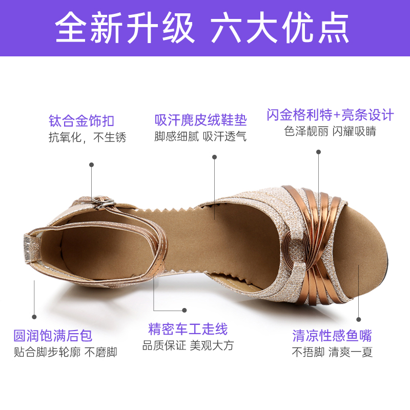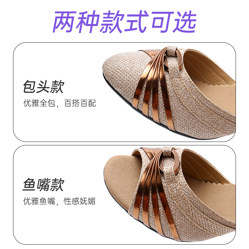 拉丁舞鞋女金色广场舞鞋子夏季跳舞鞋软底舞蹈鞋中跟交谊舞鞋低跟