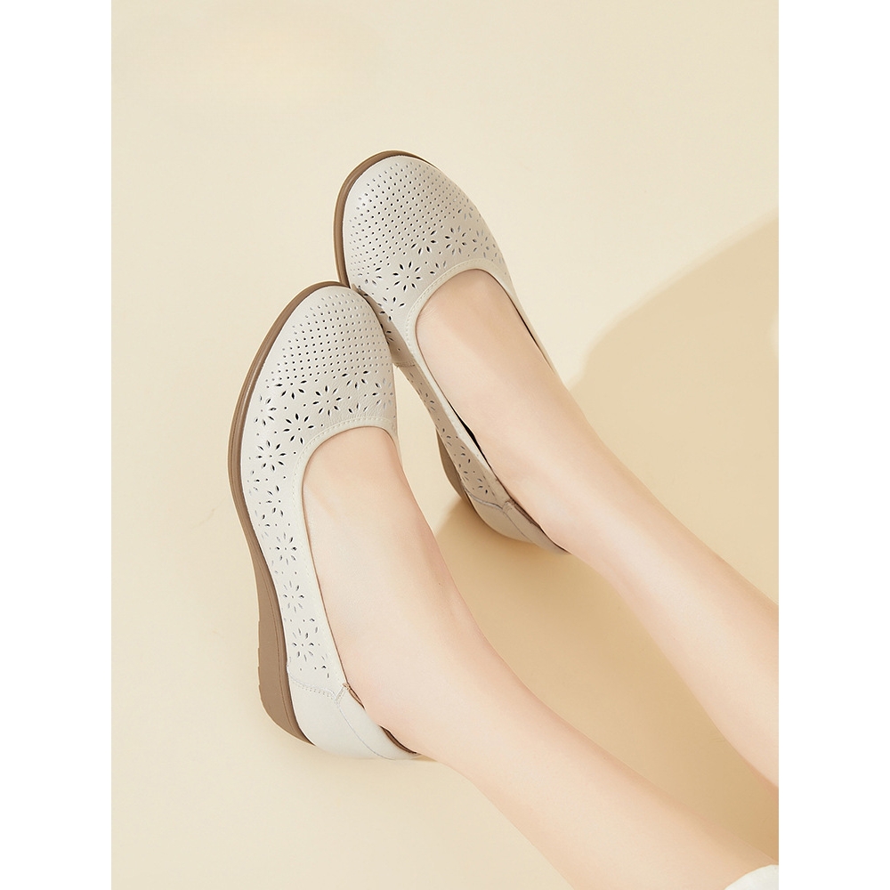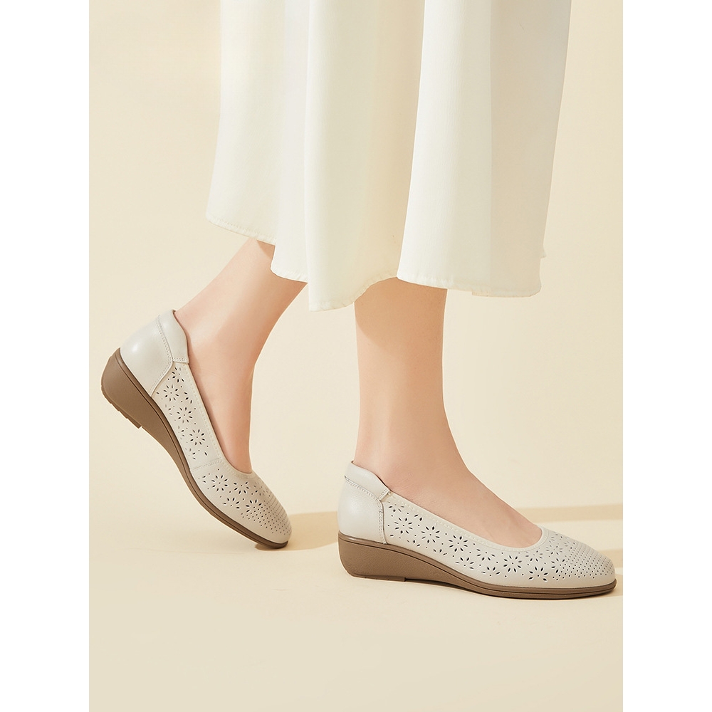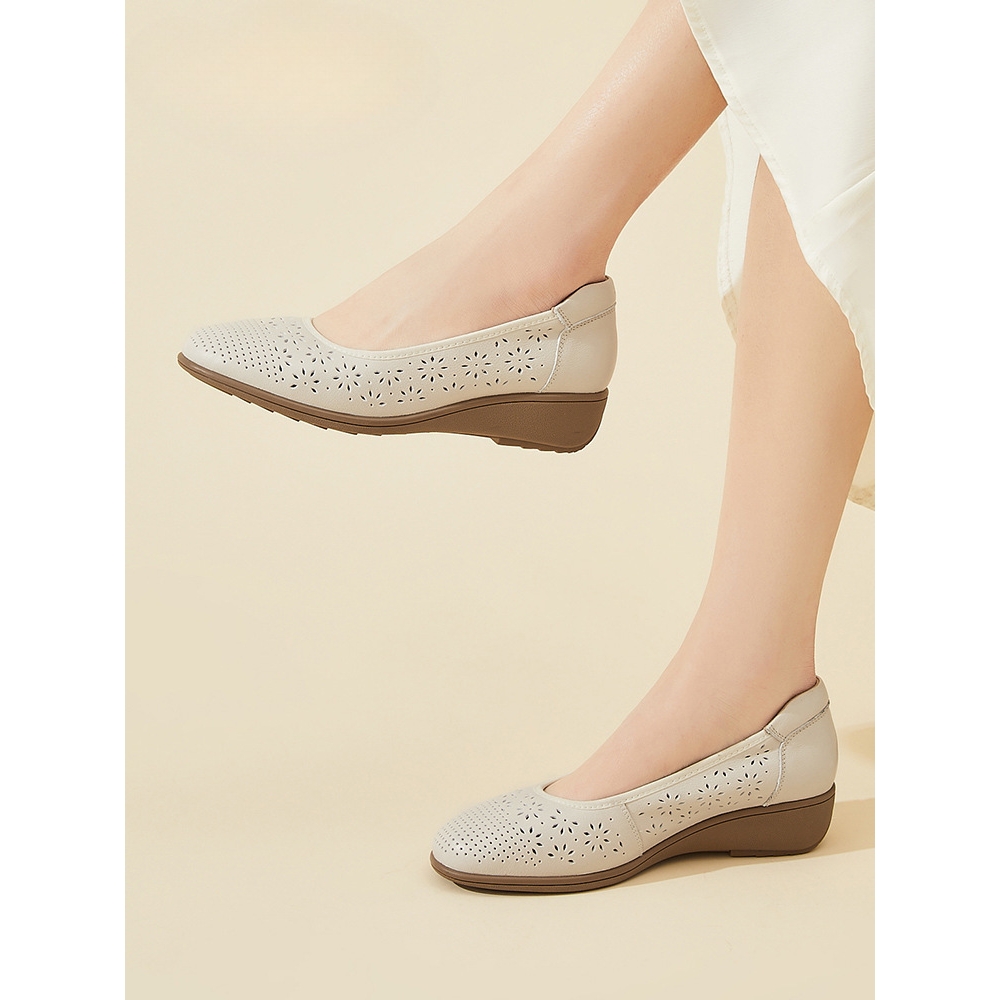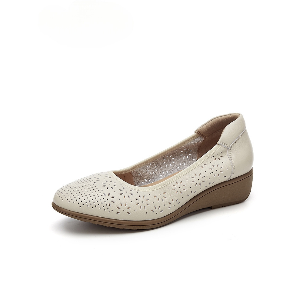 镂空坡跟单鞋女款夏季女鞋2025新款真皮软底妈妈鞋透气凉鞋