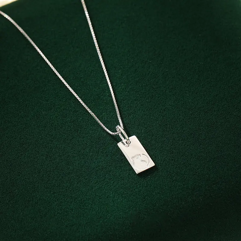 s925银双面中项链女个性国潮生肖吊坠锁骨链