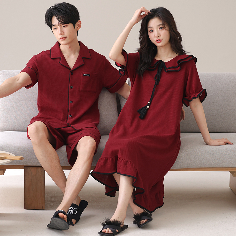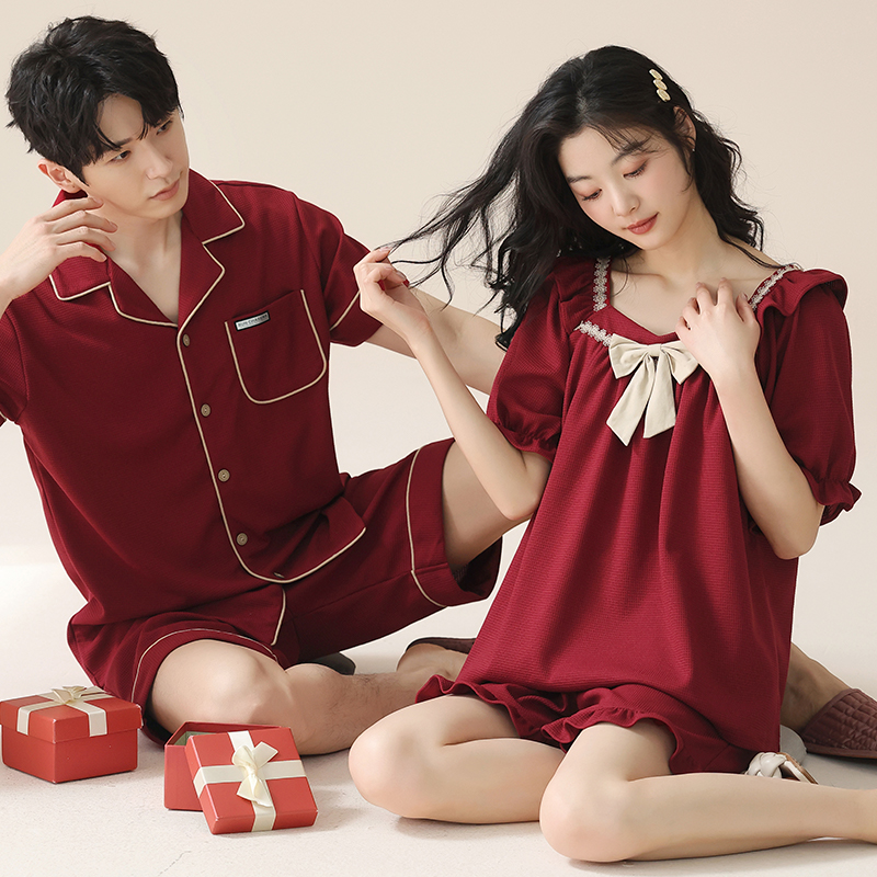 情侣睡衣纯棉新婚红色家居服短袖一男一女士夏季喜庆夏天结婚套装