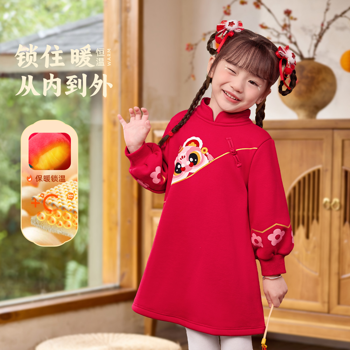 女童裙子新年款冬季宝宝公主裙婴儿拜年服红色儿童连衣裙过年衣服