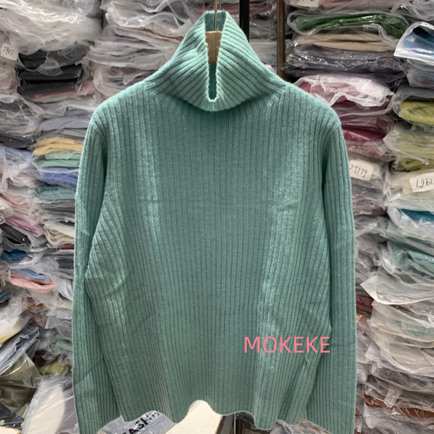 韩系秋冬新款绵羊毛高领坑条长袖针织衫女软糯洋气百搭套头毛衣