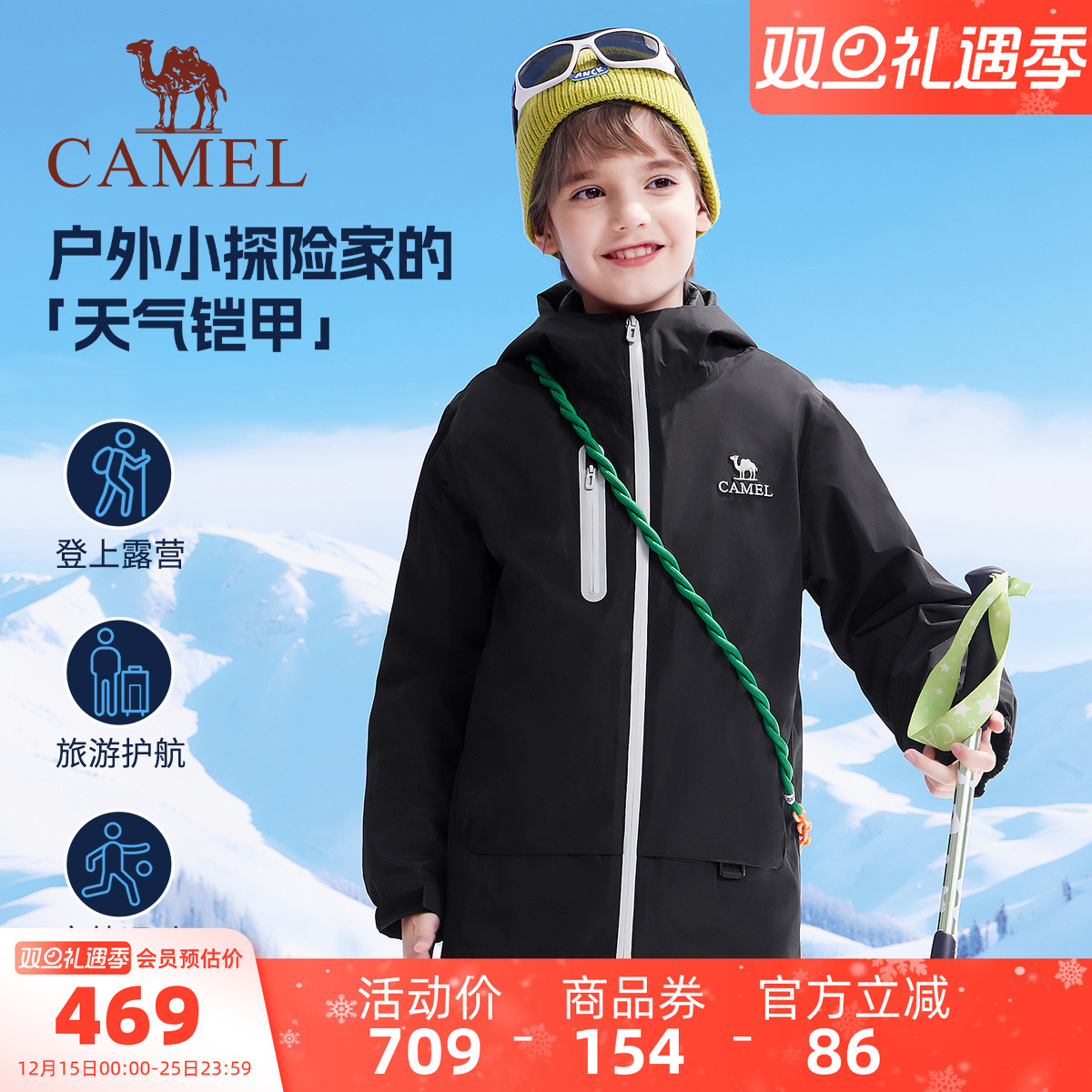 小骆驼儿童冲锋衣羽绒服2025秋冬新款中大童加厚保暖服男女童外套