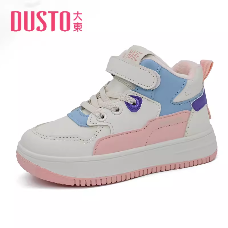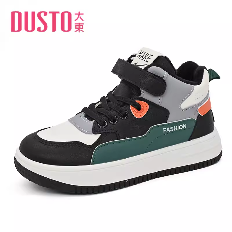 大东板鞋23年冬季新款休闲圆头拼色魔术贴小学生童鞋23D1468