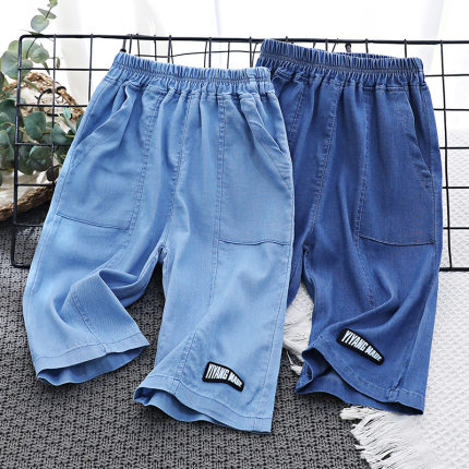 男童夏款裤子七分裤宽松冰丝牛仔短裤薄款男孩裤子宽松中裤五分裤