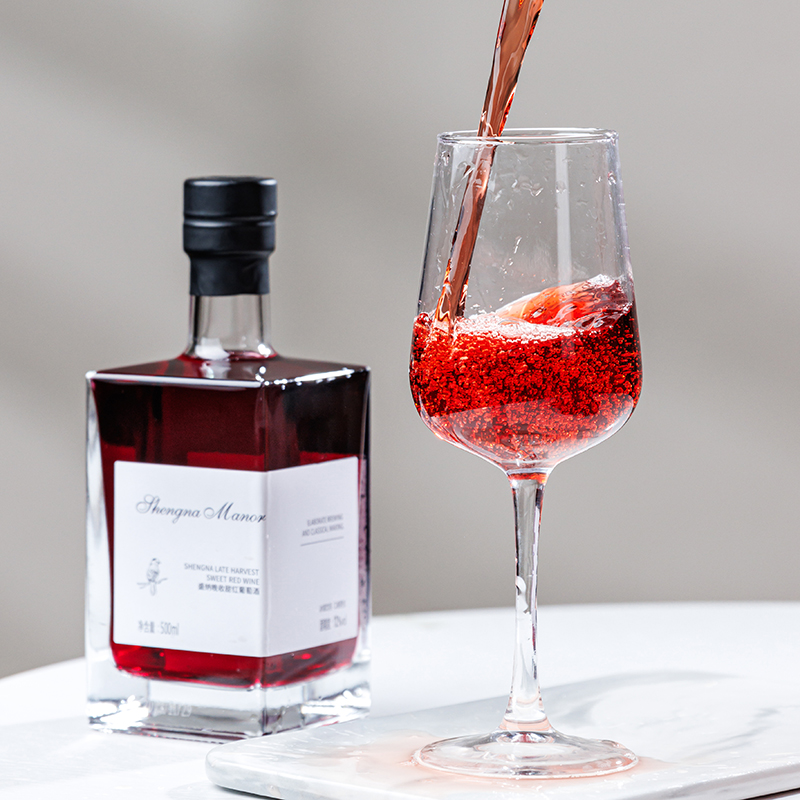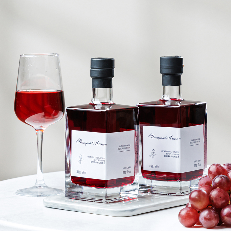 喆斐尔晚收甜红葡萄酒12度高颜值甜型方瓶晚安葡萄酒500ml