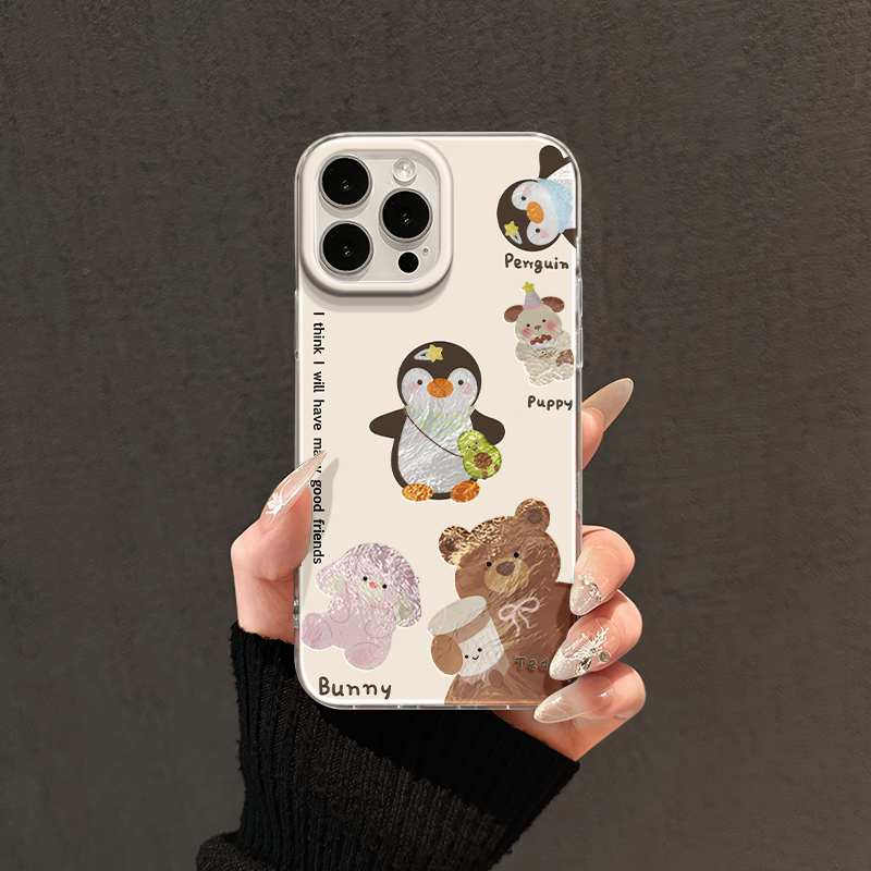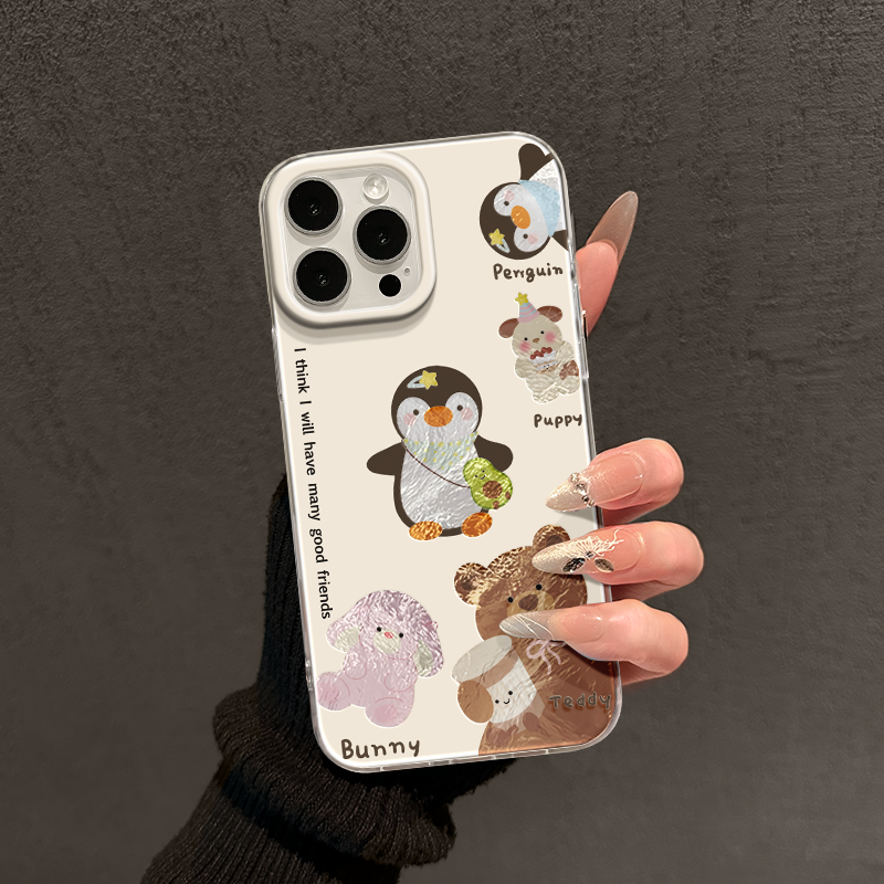 玩偶企鹅适用苹果16pro手机壳iphone14创意ins风小众华为mate60漩涡壳IMD保护套小米14防摔oppo