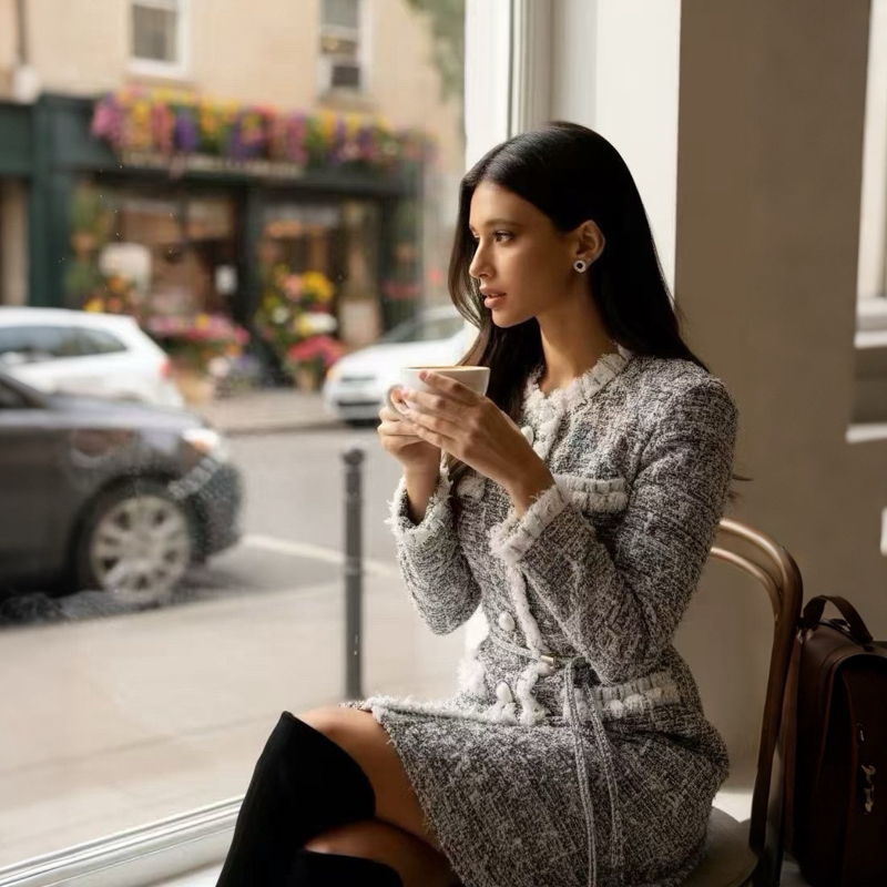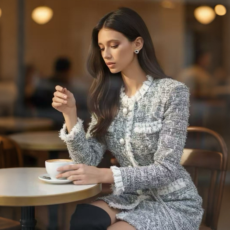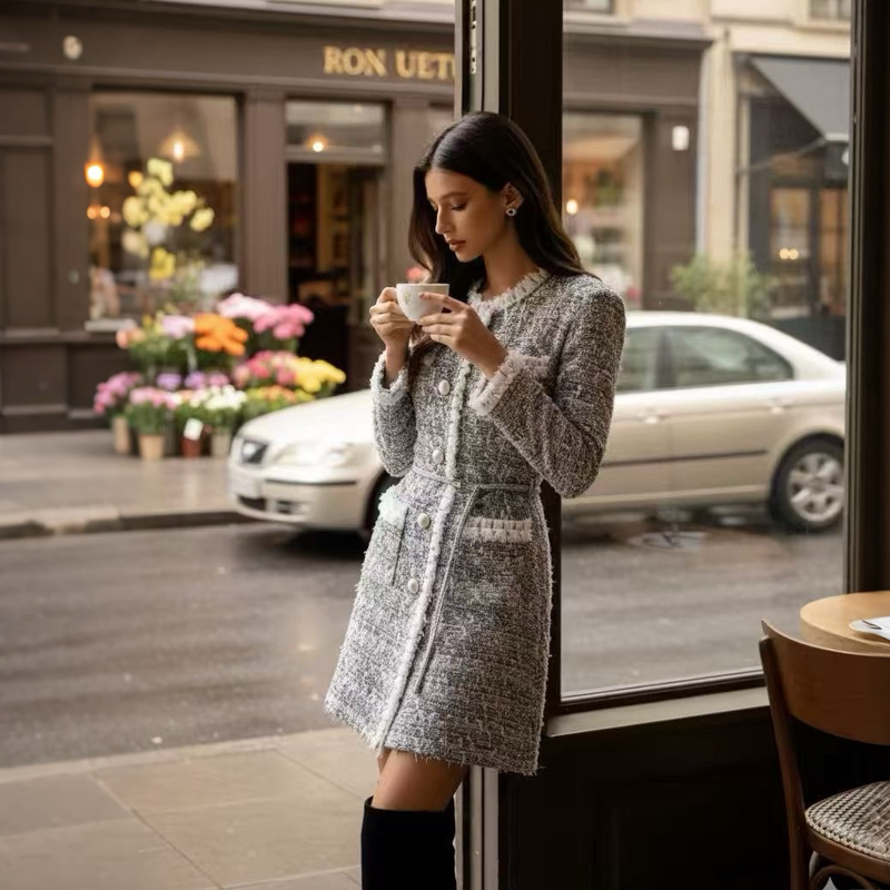 粉红大布娃娃高级感名媛小香风蕾丝拼接大衣厚外套女2025秋冬新款