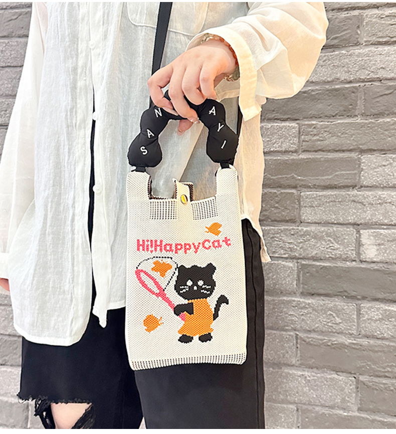 针织手机包女斜跨小巧轻便迷你单肩可爱韩版时尚零钱包手提小方包