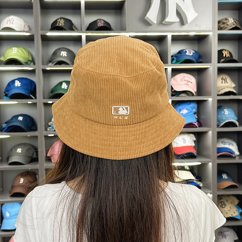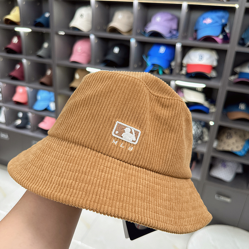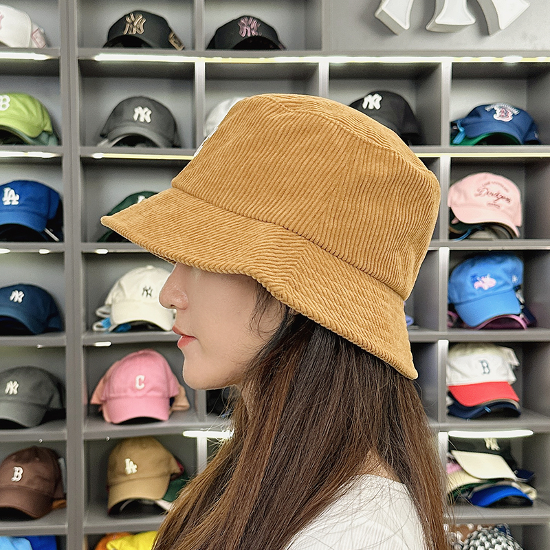 韩国MLB渔夫帽2023秋冬新款刺绣小标灯芯绒帽子盆帽潮ins男女同款