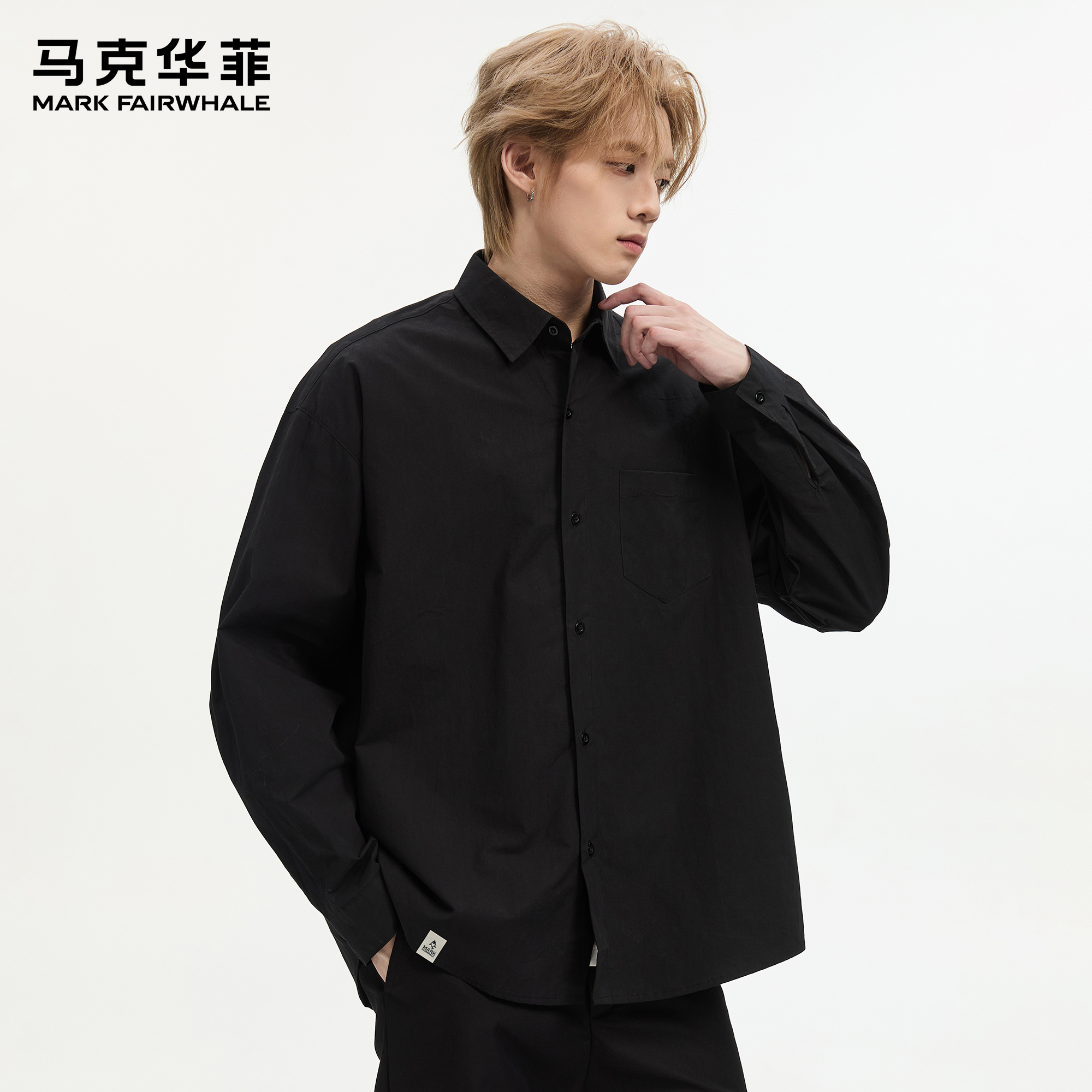 马克华菲长袖衬衫男新款潮牌ins高级感宽松纯棉简约百搭翻领衬衣