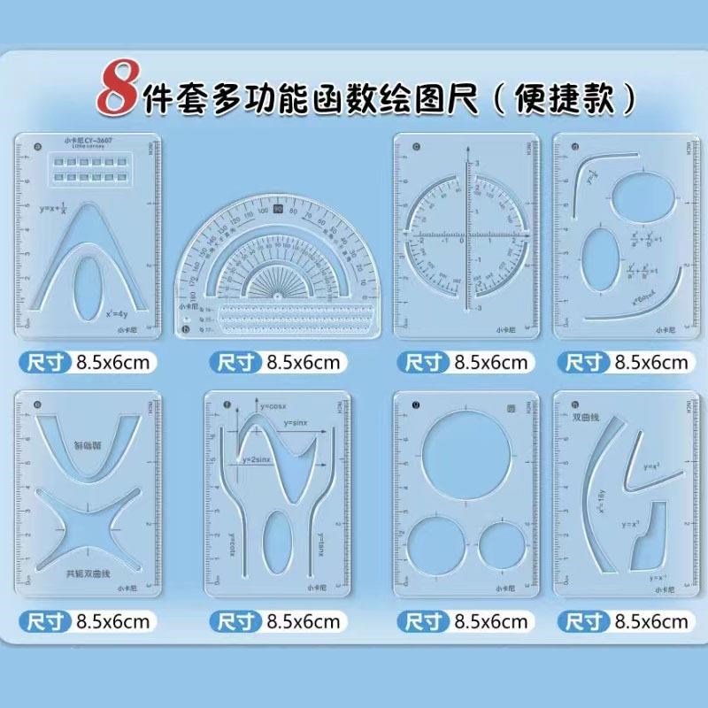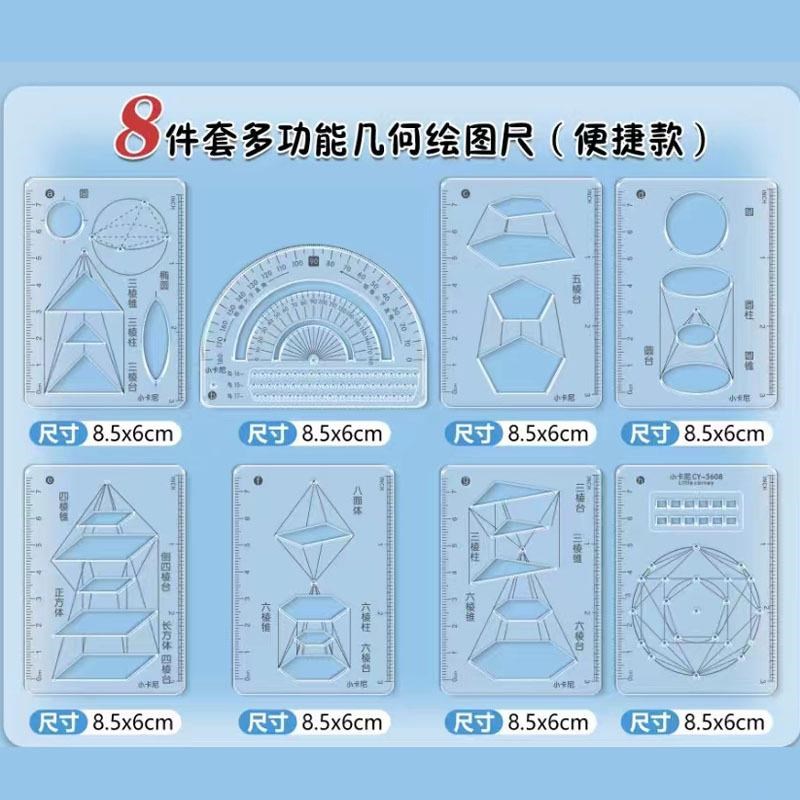 8件套多功能尺子套装几何图形高中数学学生画图模板尺绘图几何尺