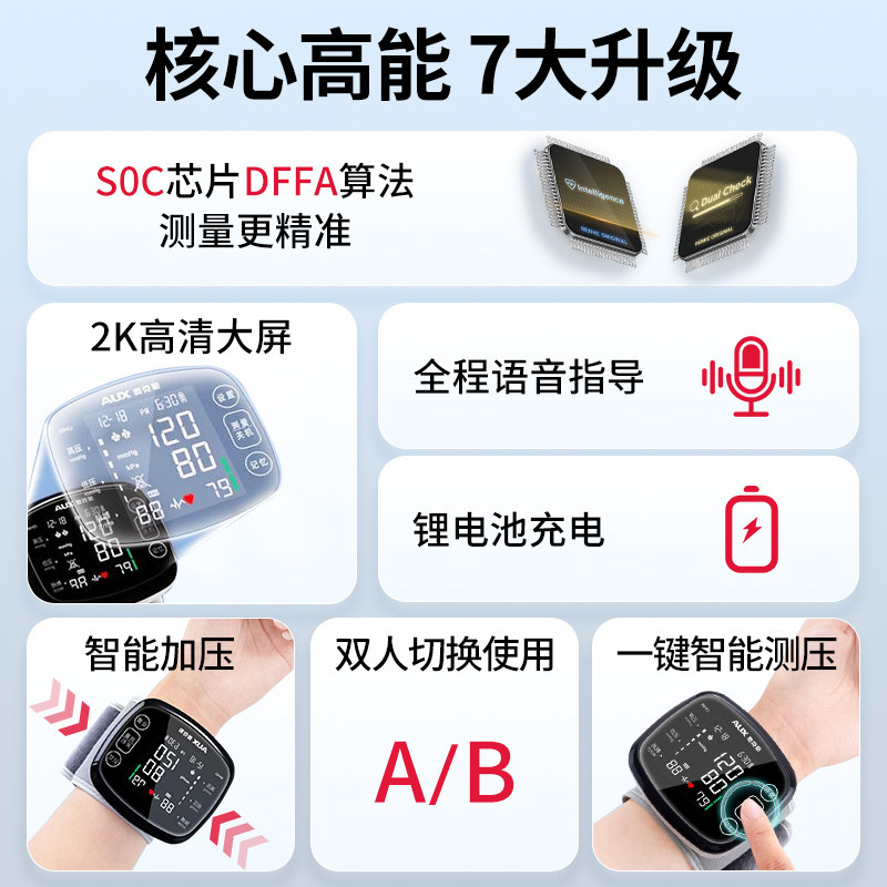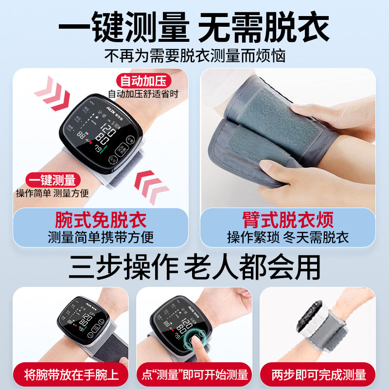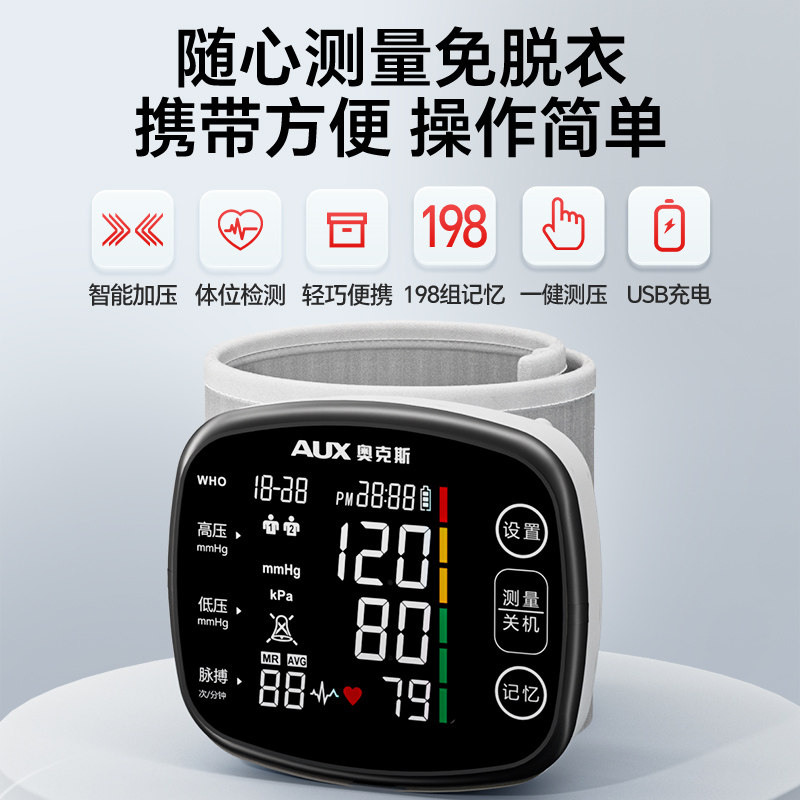 奥克斯电子血压家用测量仪高精准计腕式血压充电全自动血压测压仪