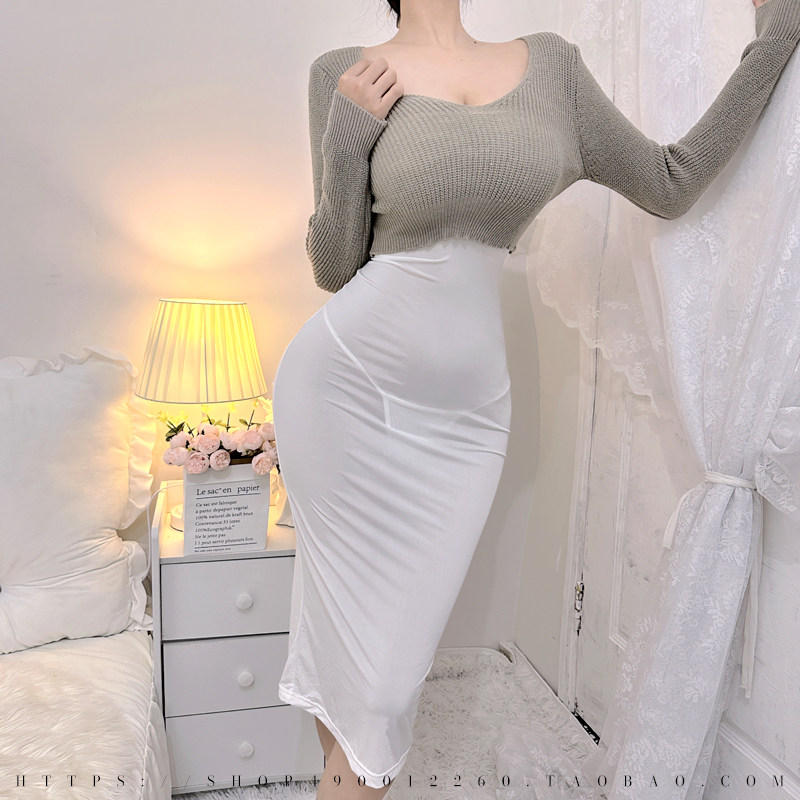 性感御姐夜店紧身露背包臀裙纯欲低胸诱惑冰丝绑带透视半身长裙