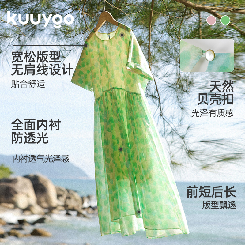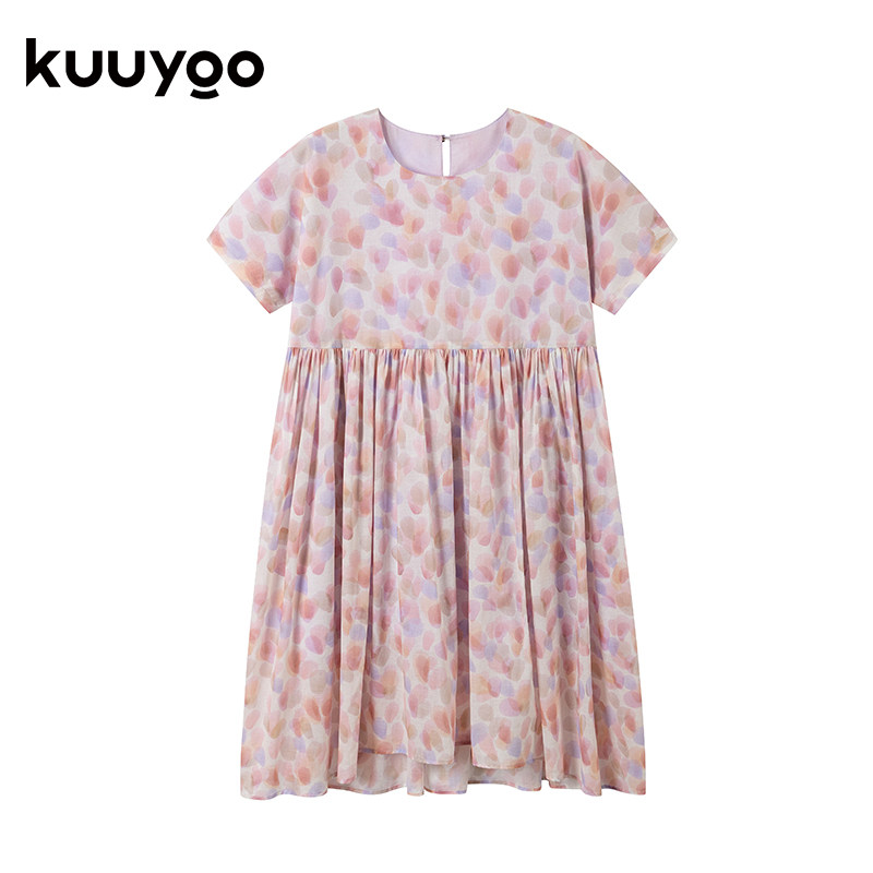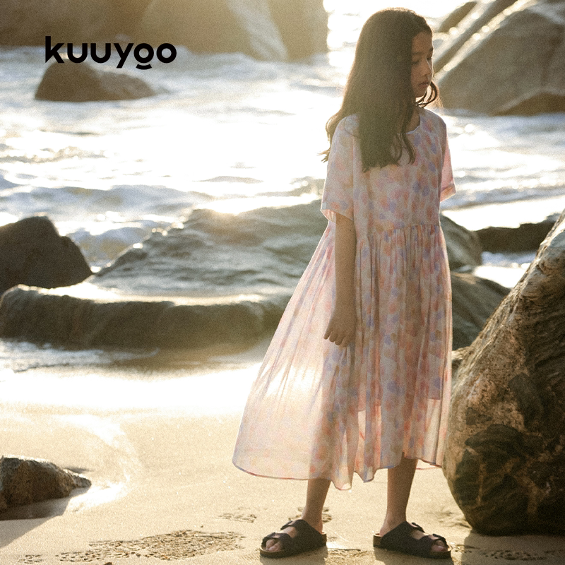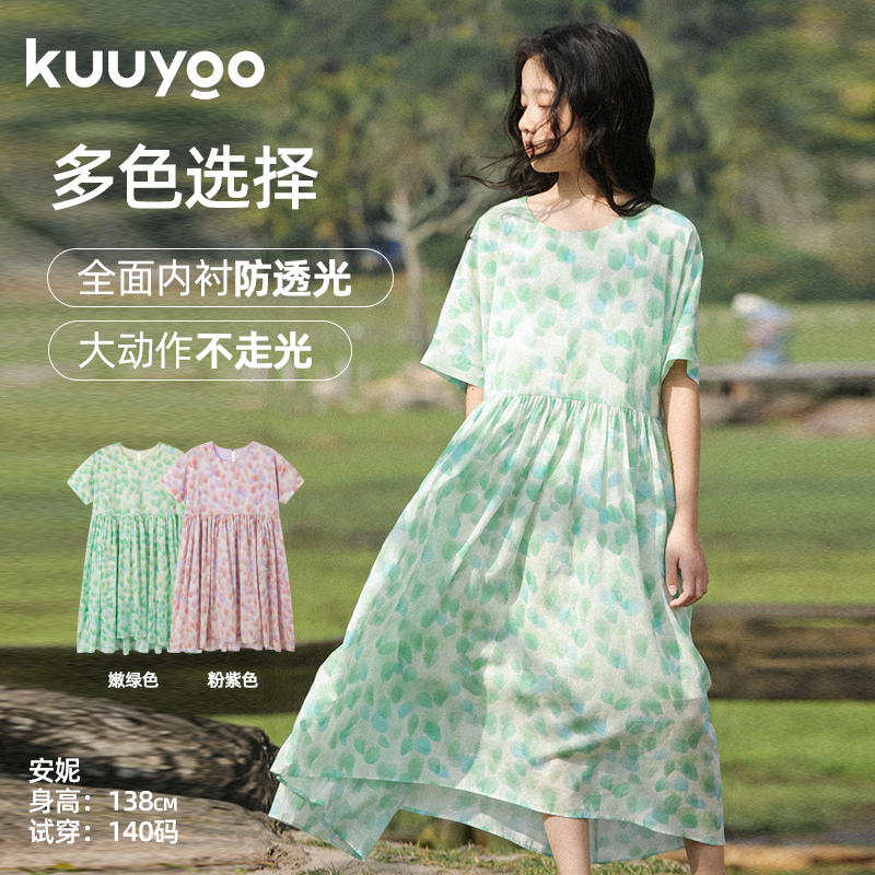 KUUYOO浪漫晕染轻薄连衣裙中大童夏季透气亲肤防透光儿童宽松裙子