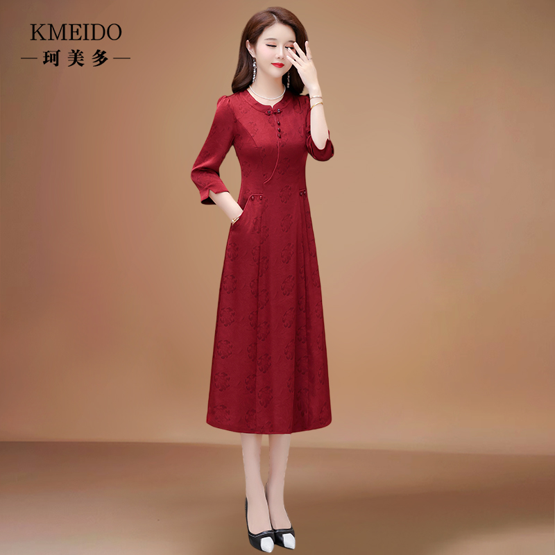 高端喜婆婆婚宴装礼服改良旗袍平时可穿长袖连衣裙女初秋高贵妈妈
