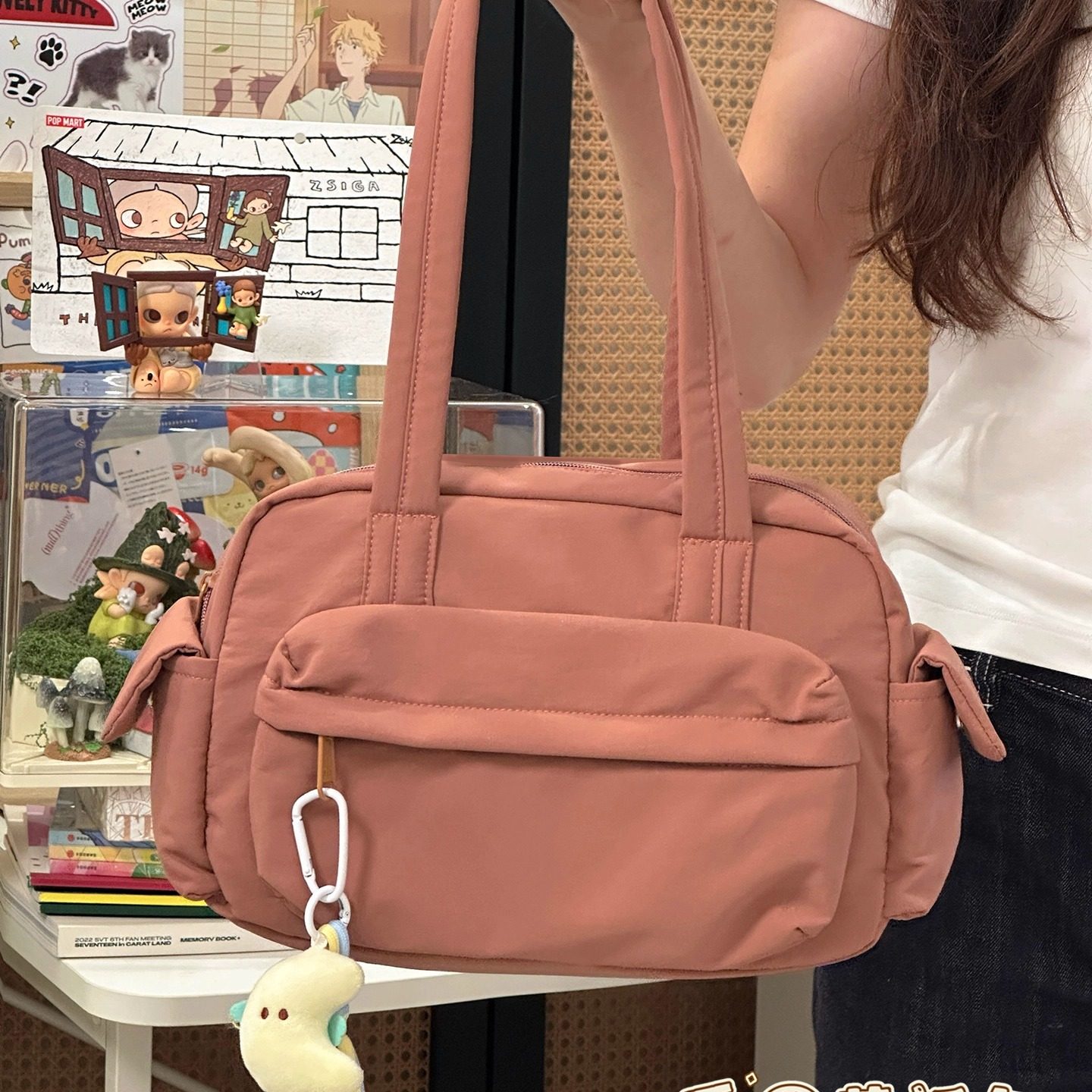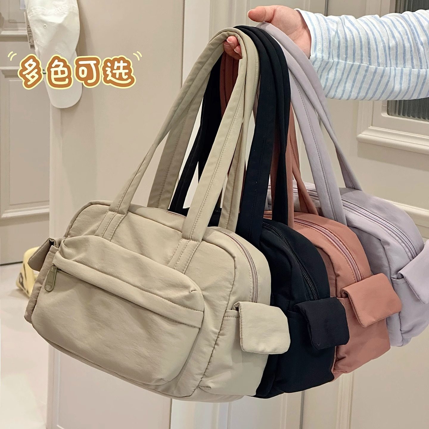 ins风纯色百搭手提包女 轻便通勤托特包简约休闲大容量学生单肩包