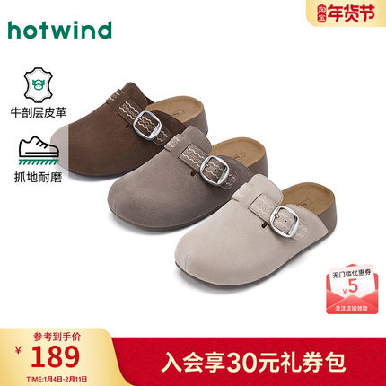 热风复古勃肯鞋女鞋2026年春季新款外穿通勤半拖百搭舒适平底鞋子