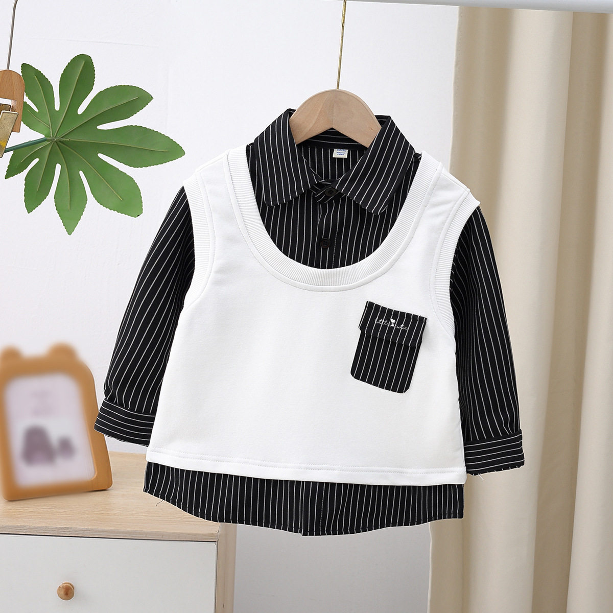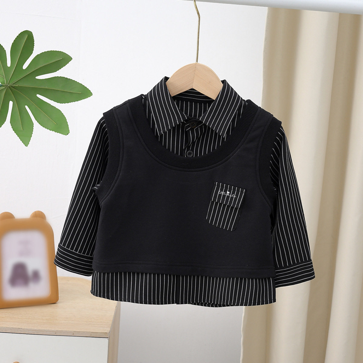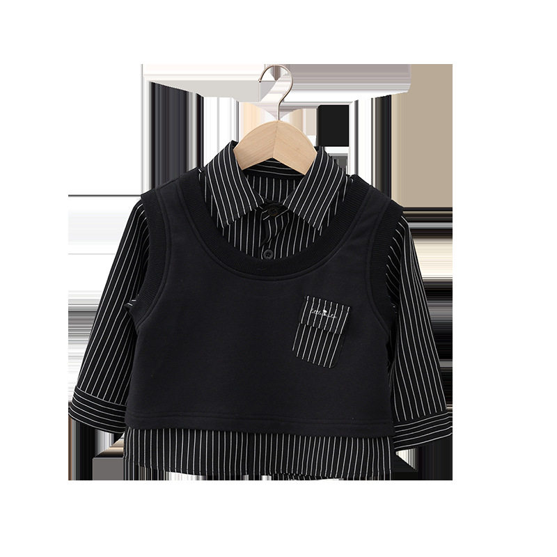 史努比品牌童装儿童马甲假两件长袖上衣男童衬衫秋冬打底一件代发