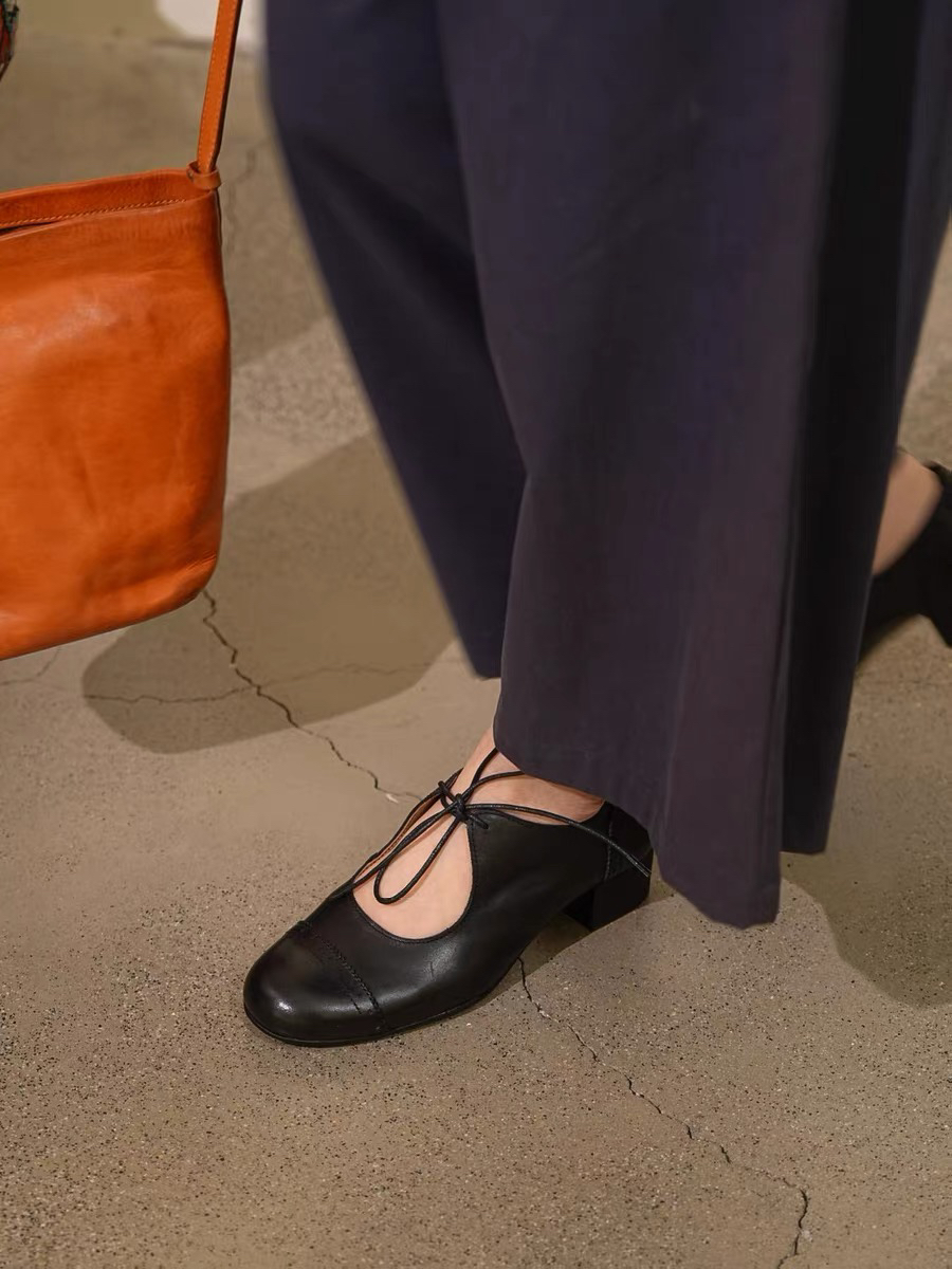 ZACH PENG玛丽珍鞋女新款复古鞋子小众设计粗跟系带浅口真皮单鞋