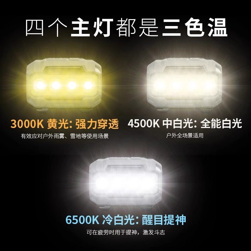 NITECORE奈特科尔HA23UHE户外头灯长续航夜跑多色温轻量AAA头灯
