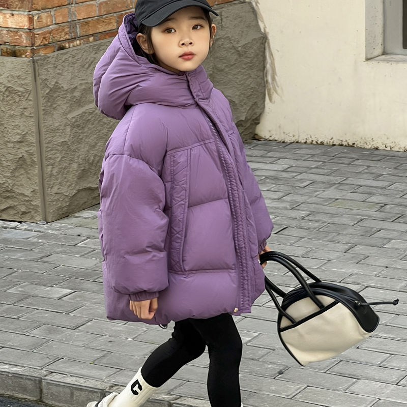 儿童90白鸭绒中长羽绒服女童秋冬装加厚连帽外套男童防风保暖棉服