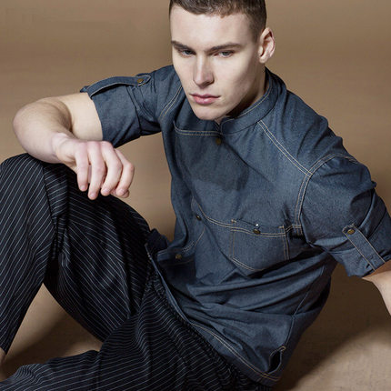 厨师服短袖酒店厨衣多米来后厨春夏装工装厨房厨师工作服男调节袖