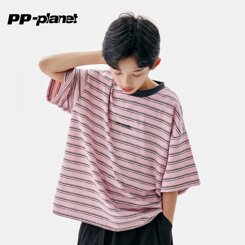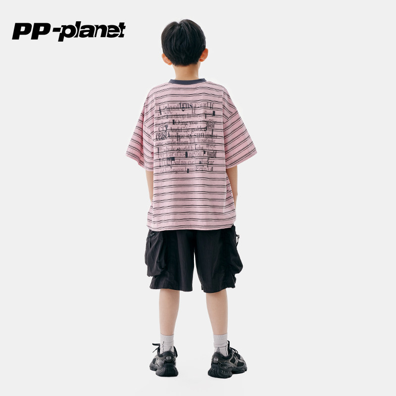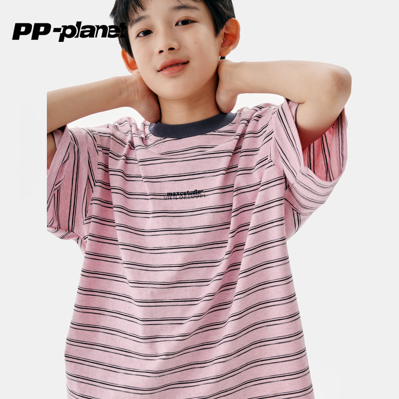 PP星球男童休闲百搭短袖T恤中大童夏新款体恤儿童轻薄百搭条纹t恤