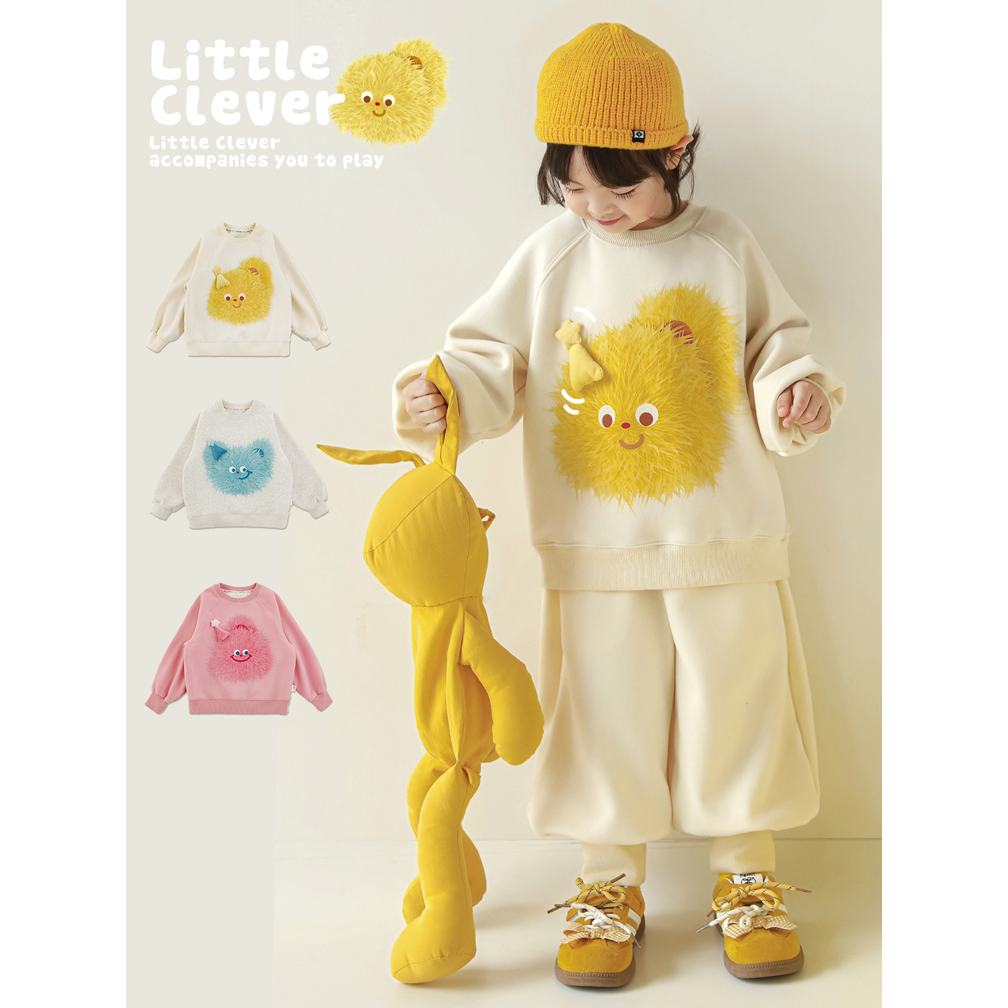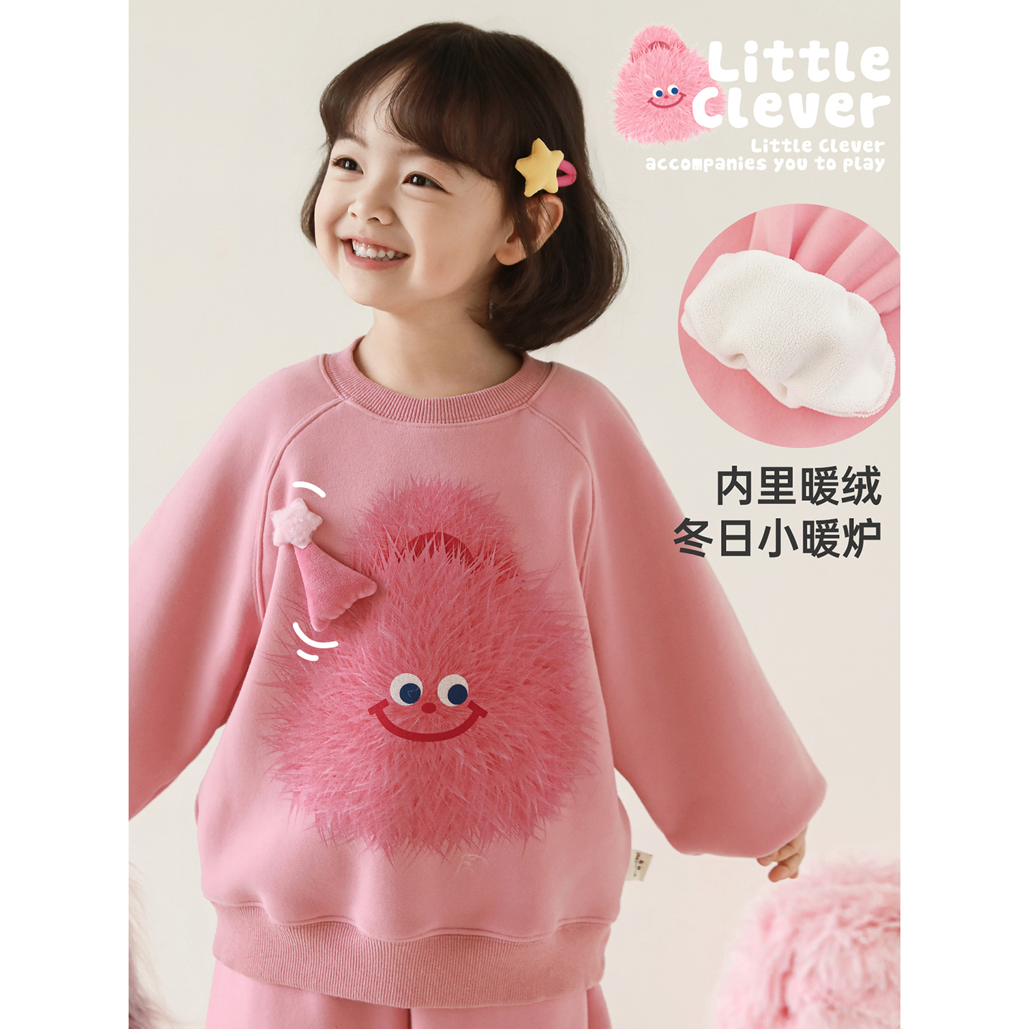 幼悠女童2025冬季新款加绒加厚卡通卫衣休闲保暖束脚长裤可爱套装