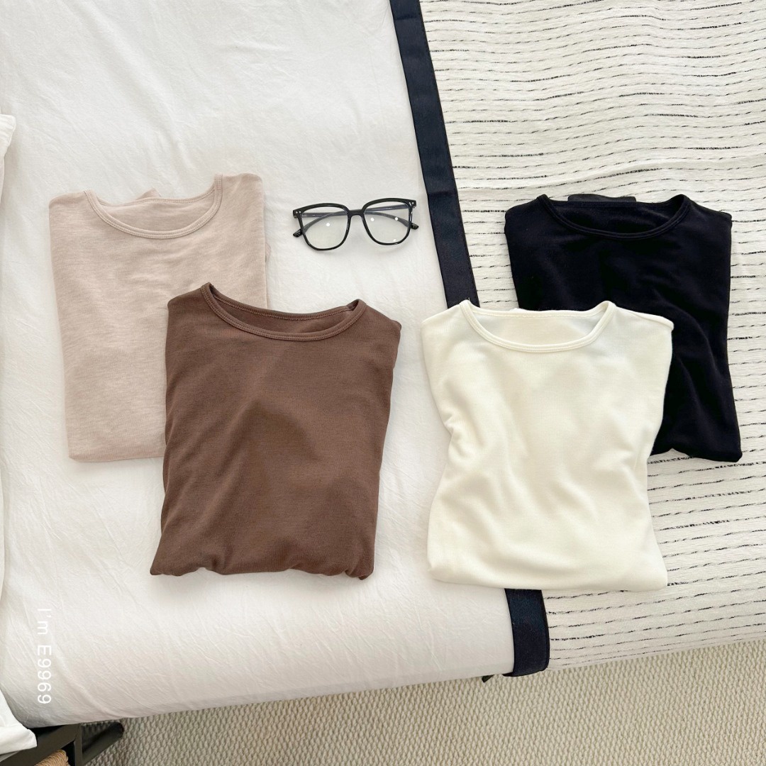 莫代尔山羊绒小圆领打底衫女秋冬季修身显瘦百搭纯色超柔长袖T恤