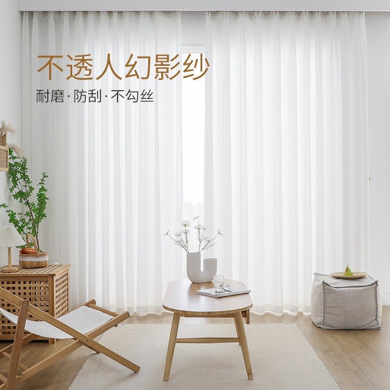 网红防刮纱帘透光不透人2021新款窗帘飘窗阳台客厅卧室窗纱小清新