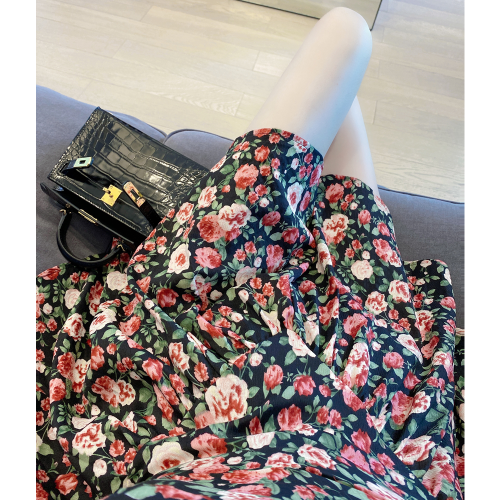 甜美A字裙雪纺碎花泡泡袖公主裙