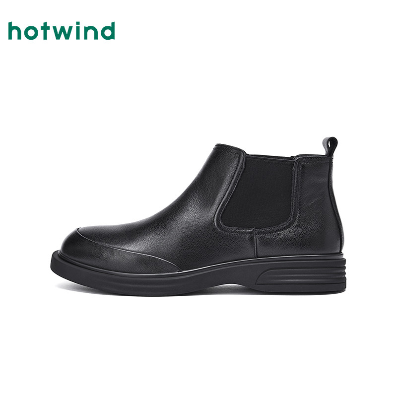 热风男鞋2025年冬季新款男士英伦风厚底短靴百搭黑色切尔西靴潮
