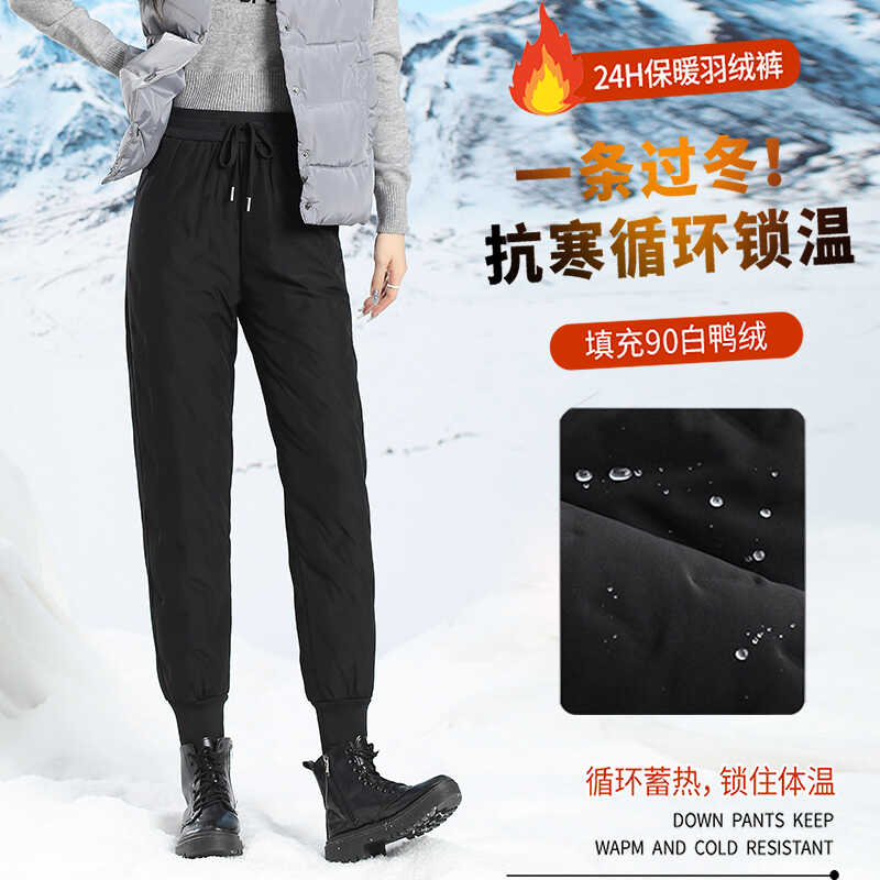 羽绒裤女外穿冬季加绒加厚白鸭绒棉裤东北大码特厚防寒保暖休闲裤