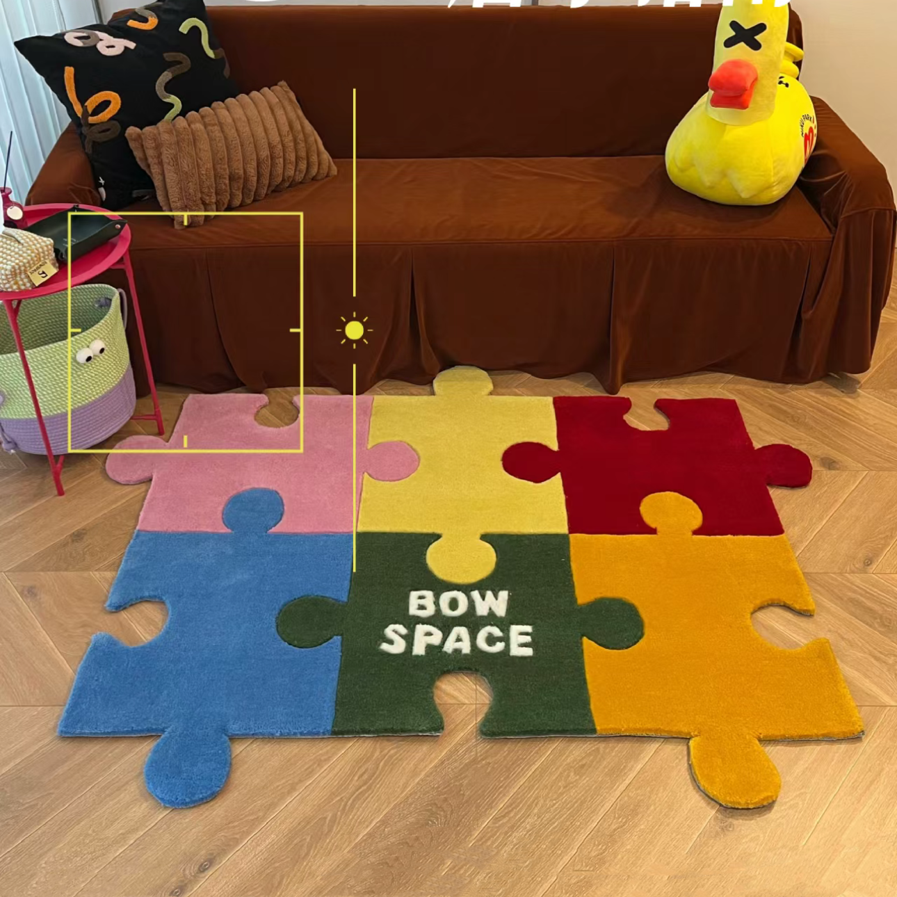 多巴胺彩色不规则拼图地毯客厅茶几卧室满铺衣帽间加厚卧室地毯垫