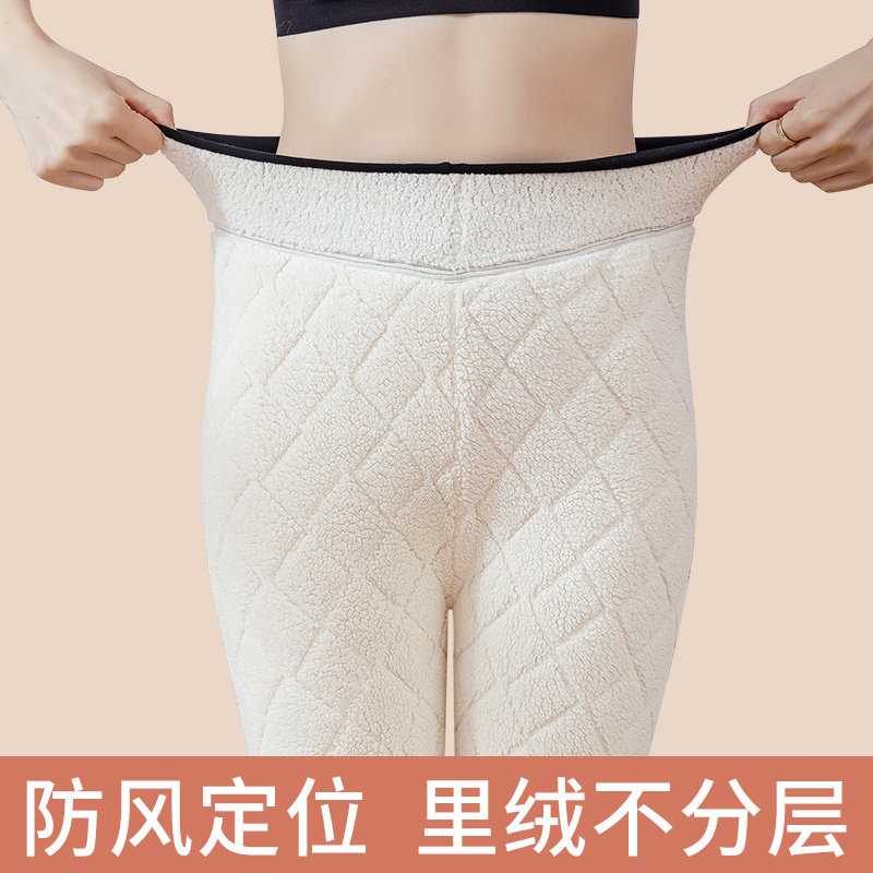 蚕丝棉裤女外穿冬季加绒加厚羊羔绒打底裤东北特厚高腰大码保暖裤