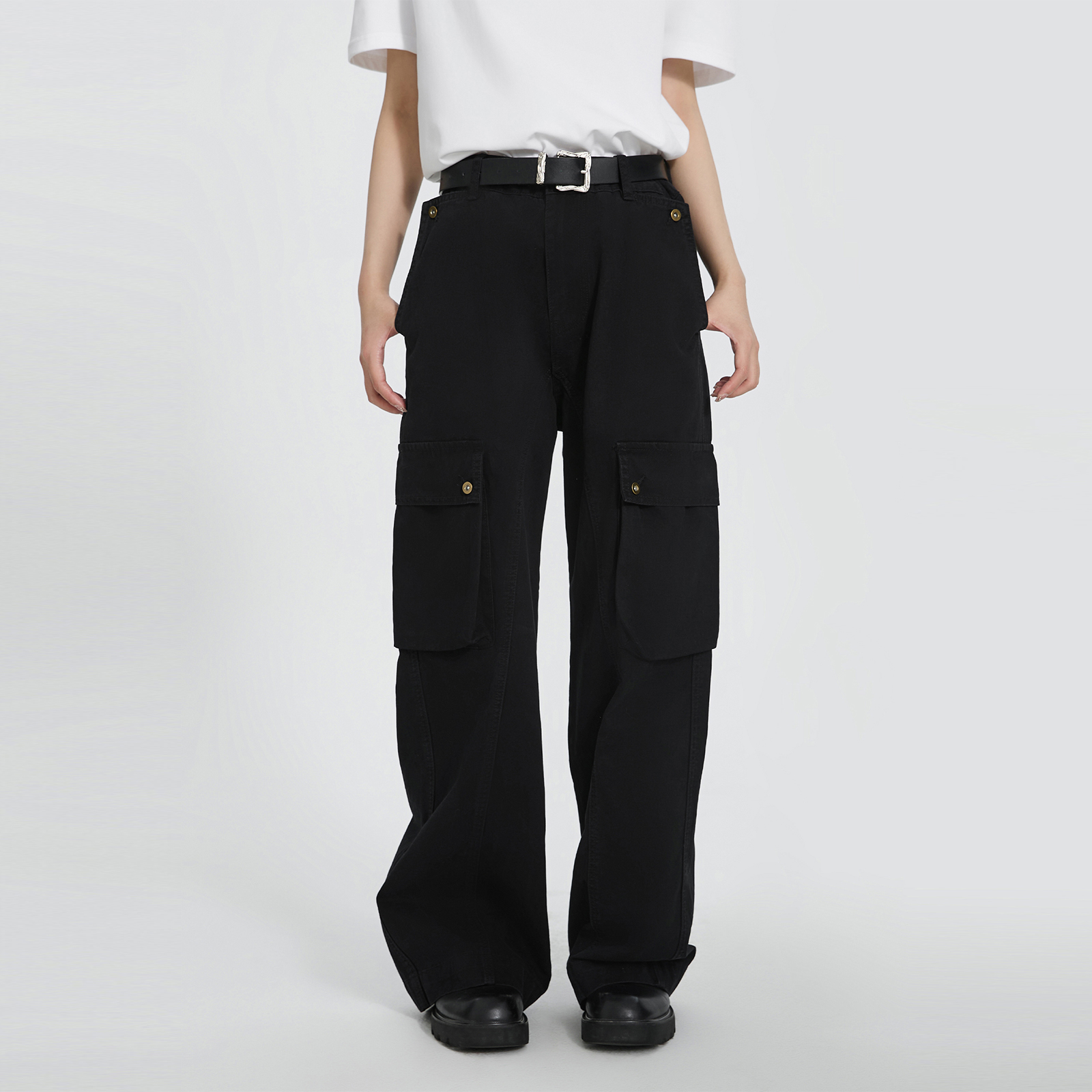 PMET 大口袋水洗做旧工装裤 复古宽松直筒褶皱休闲机能长裤夏季男