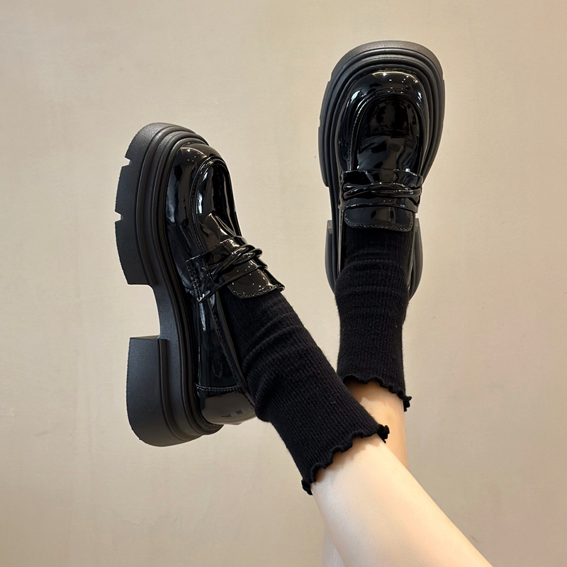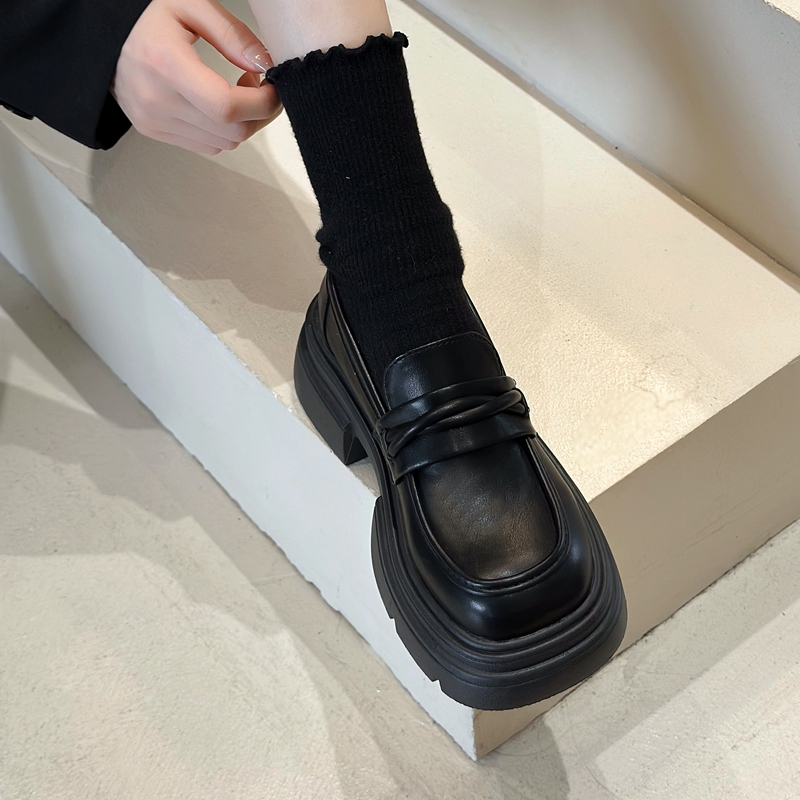 小皮鞋2025新款秋季厚底乐福鞋女士一脚蹬黑色单鞋英伦风气质jk鞋