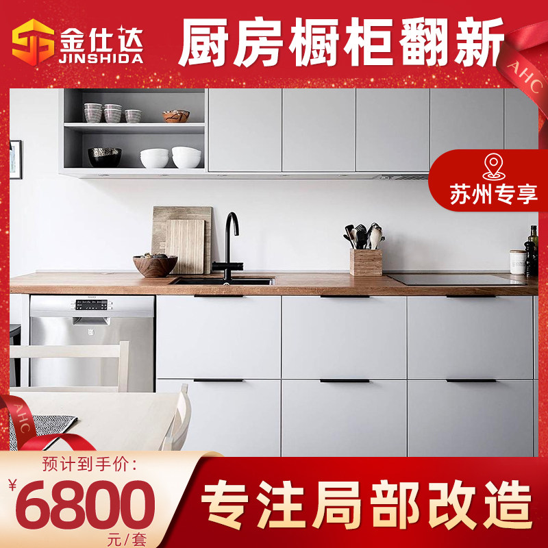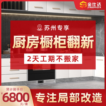 苏州厨房整体橱柜定制翻新老房二手房橱柜石英石台面局部改造装修