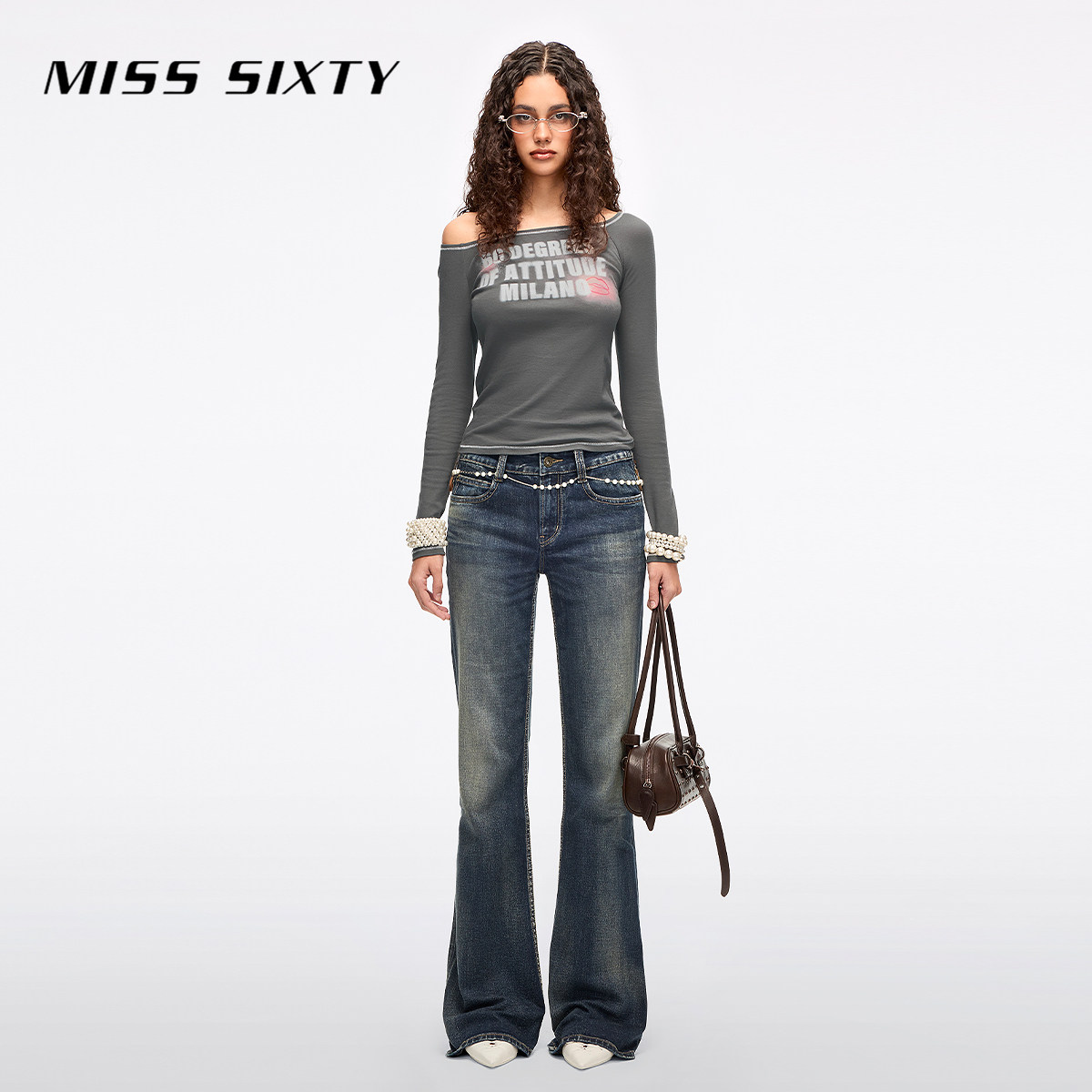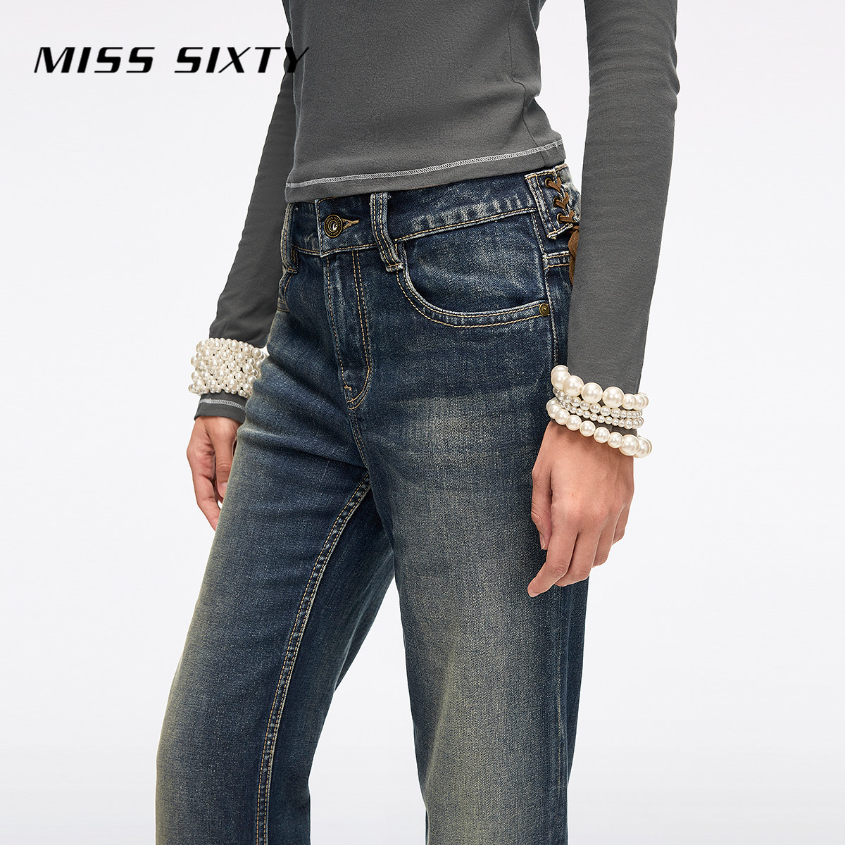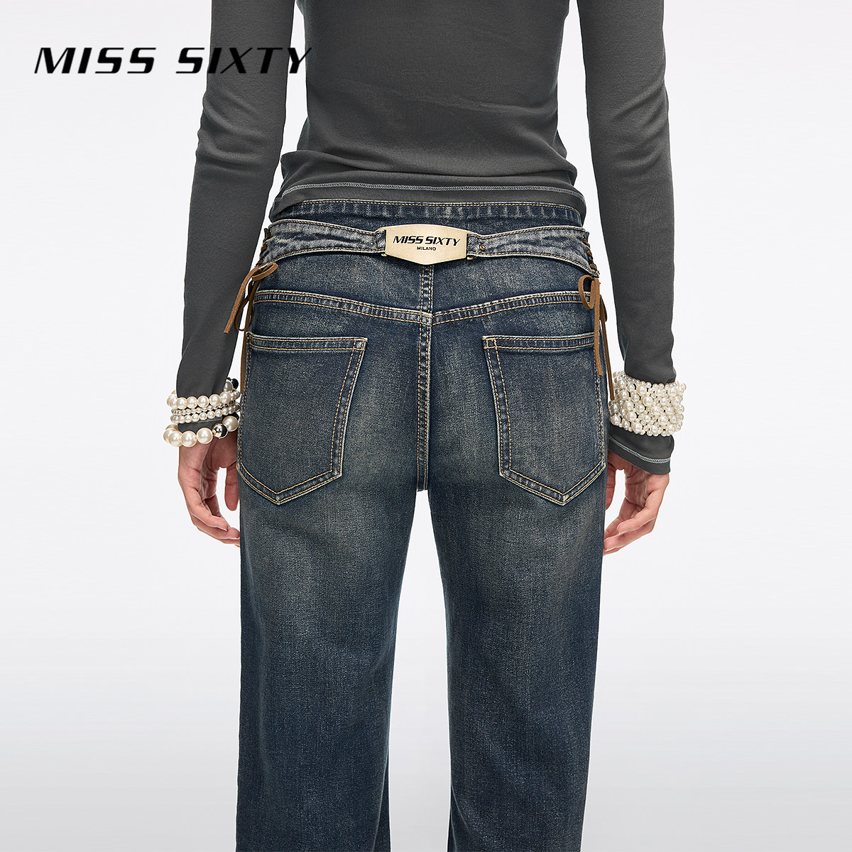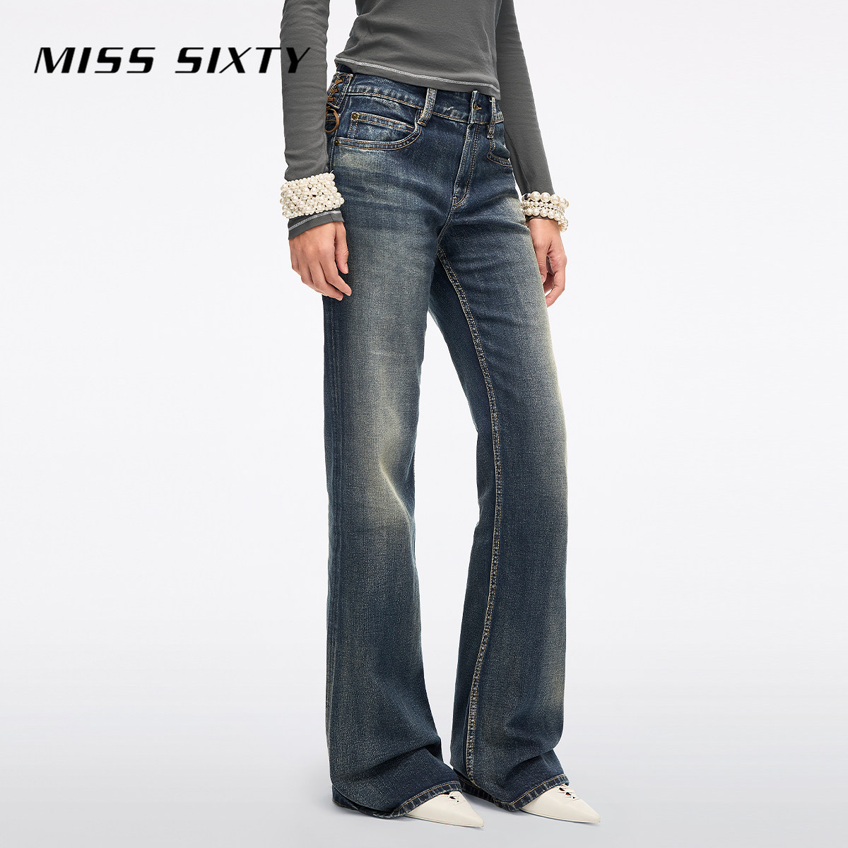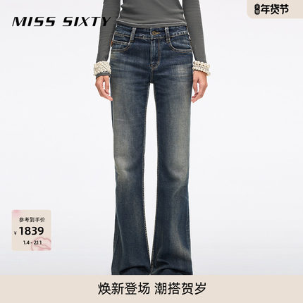 Miss Sixty2026春季新款牛仔裤女可拆复古金属腰牌绑带显瘦喇叭裤