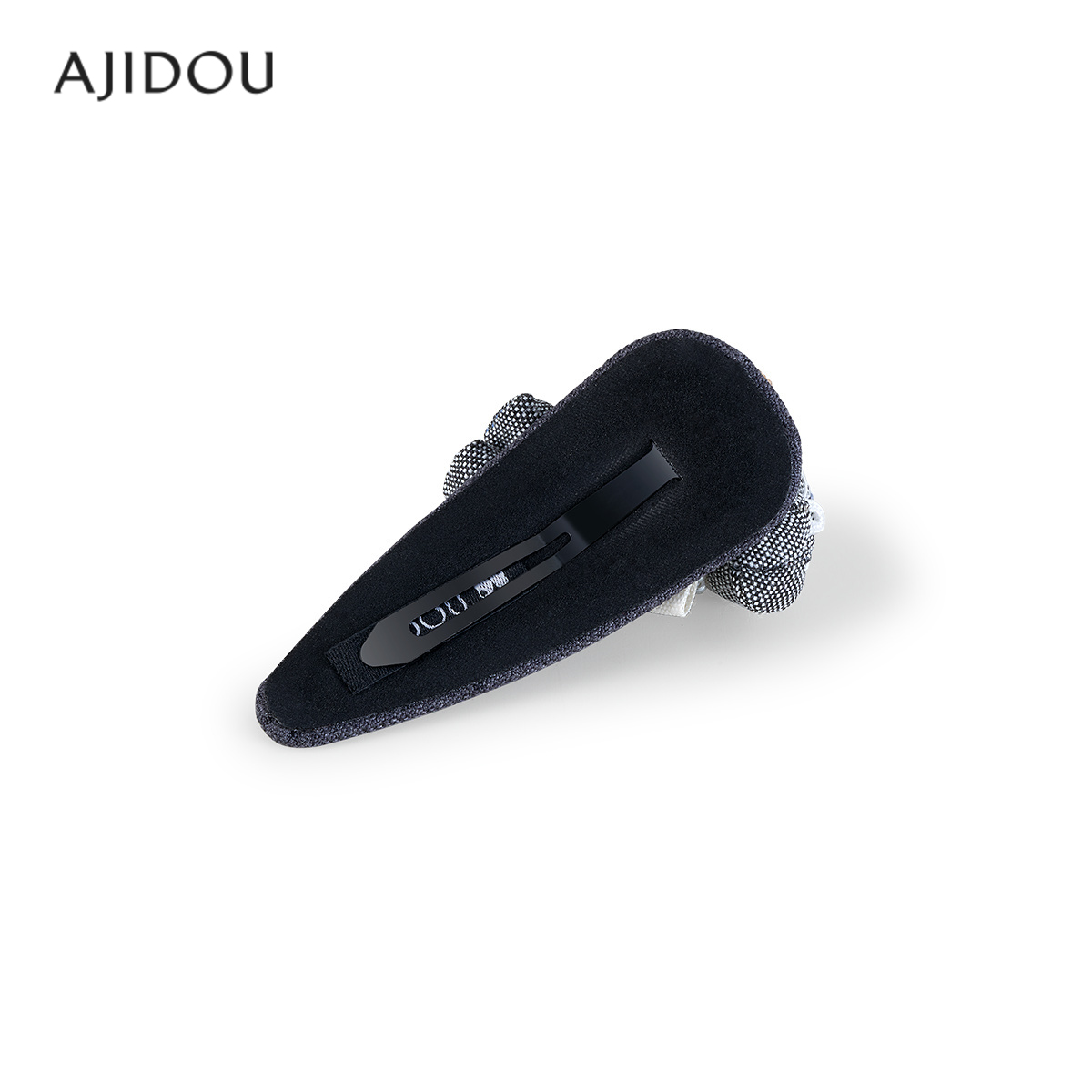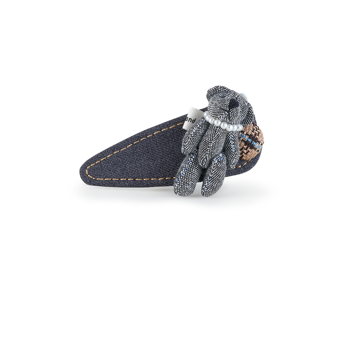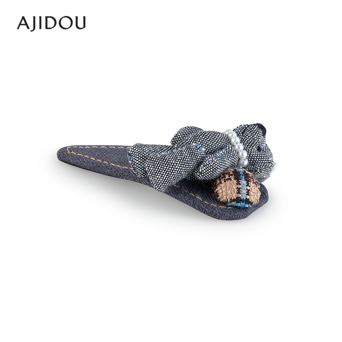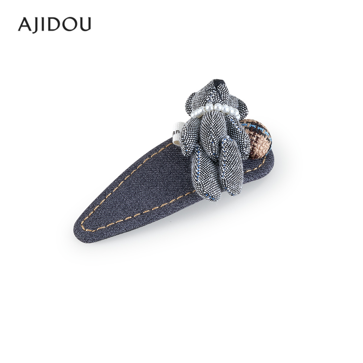 AJIDOU阿吉豆发饰韩式蓝色牛仔卡通小熊边夹高级感侧边碎发夹发卡