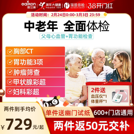 美年大健康体检套餐瑞慈体检中青老年父母男女士胸部CT胃功能体检