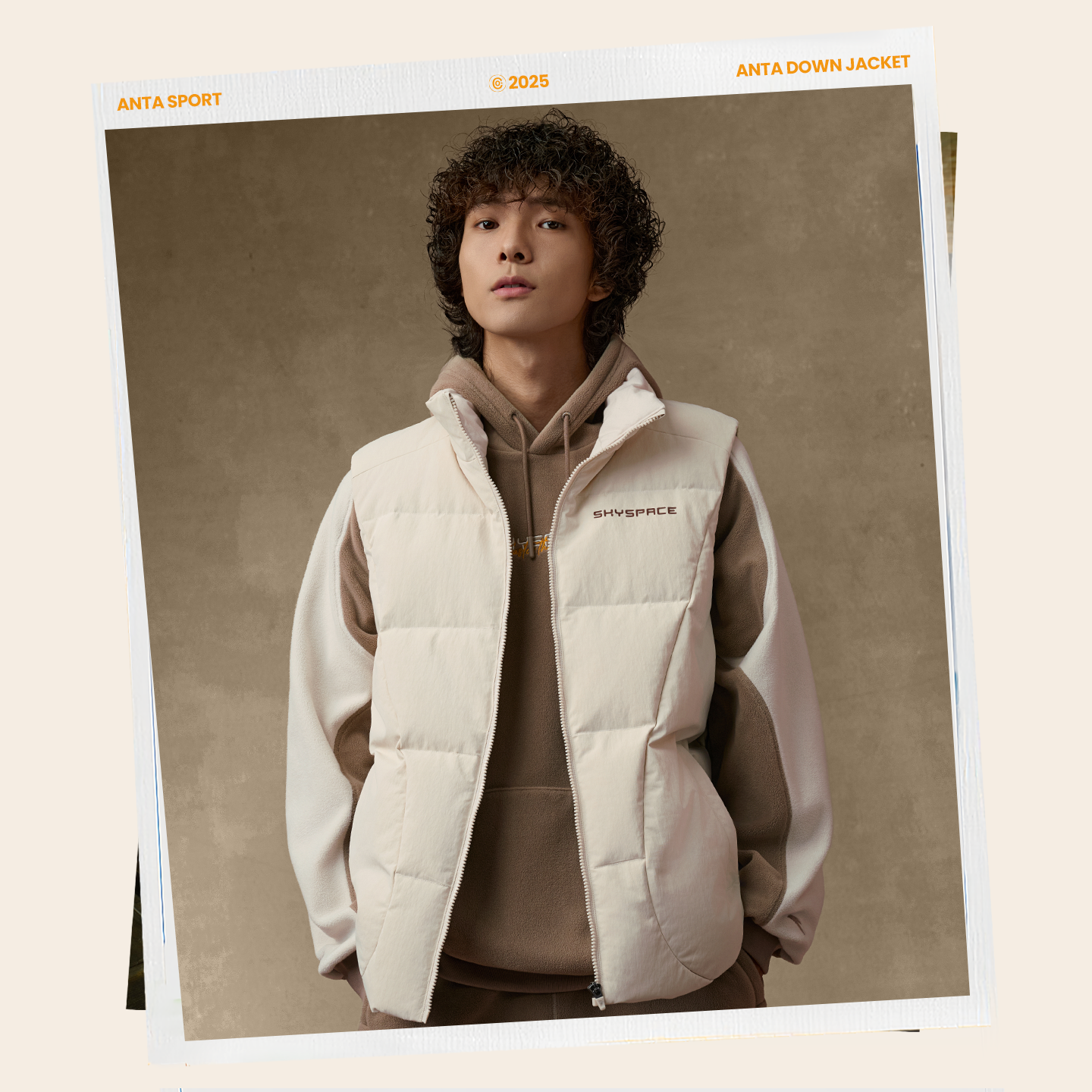 安踏美式复古羽绒服马甲男2025冬季新款时尚休闲防风立领棉服背心