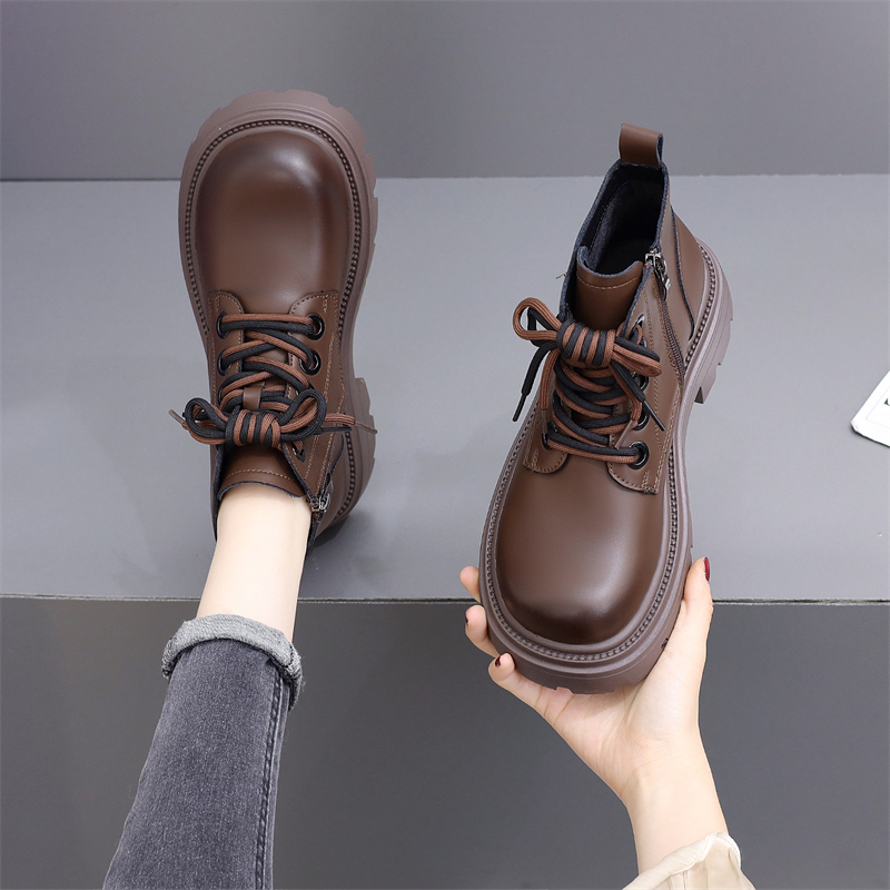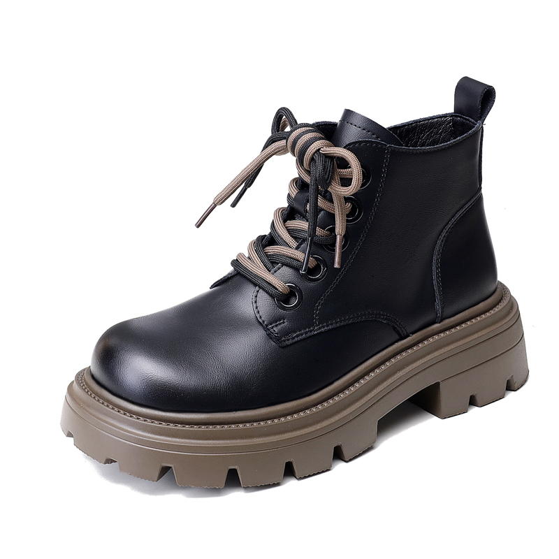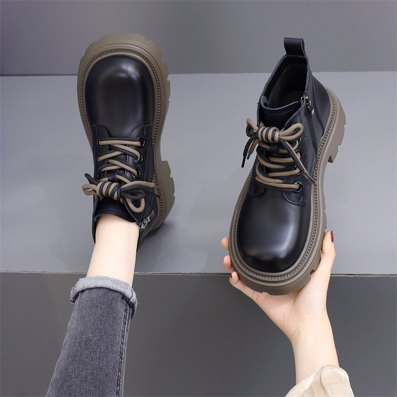 真皮马丁靴女2025秋冬新款加绒小个子复古美拉德圆头厚底增高短靴