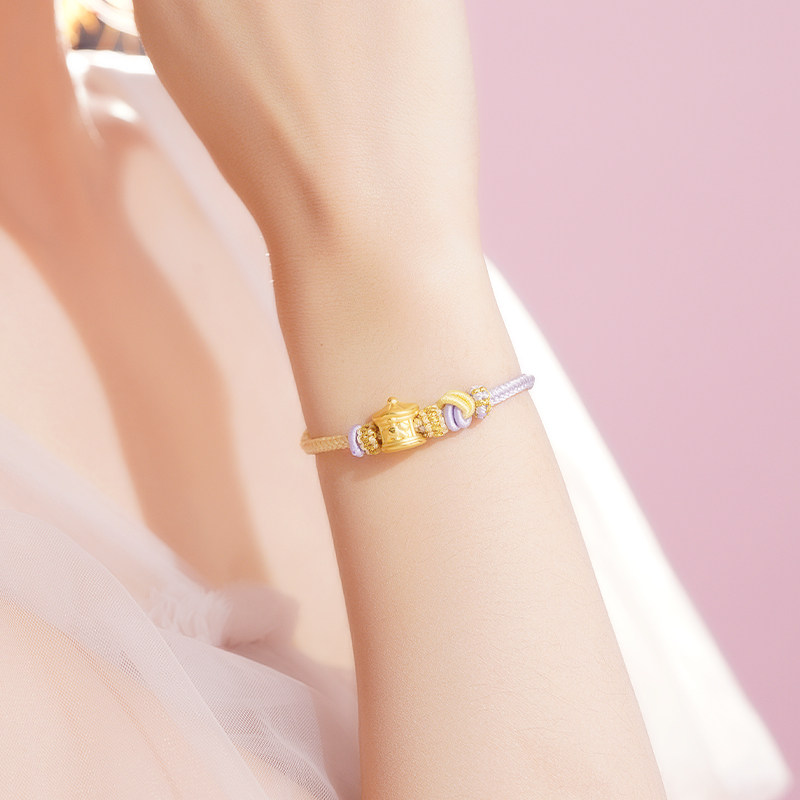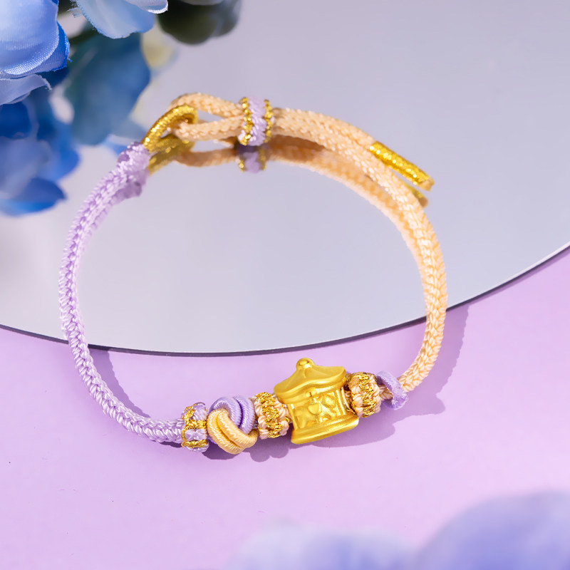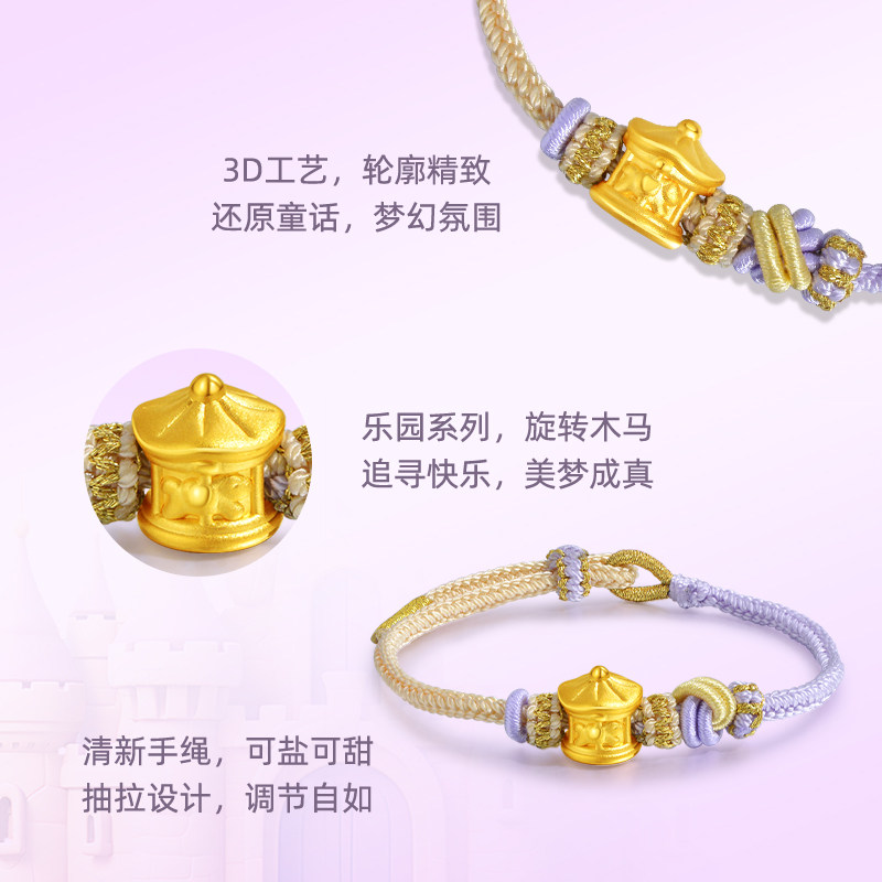 老庙黄金足金旋转木马手绳手链3D童话梦境系列在逃公主少女心礼物