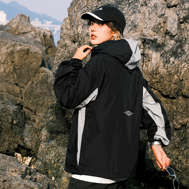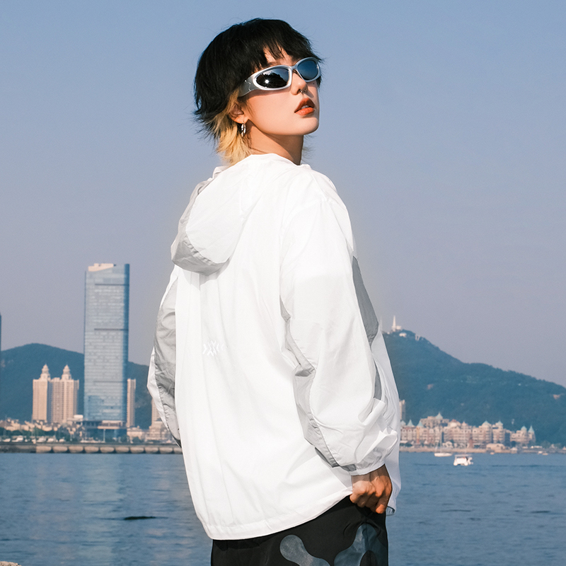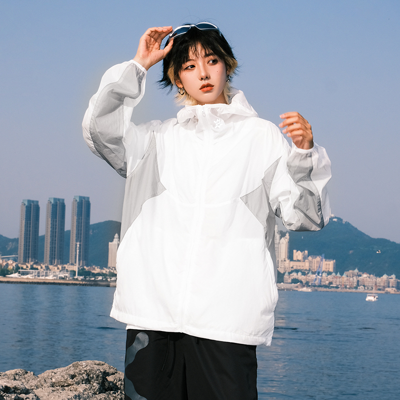 THEWIZBRAND UPF50+春夏轻薄拼接黑白色户外皮肤衣连帽防晒服男女