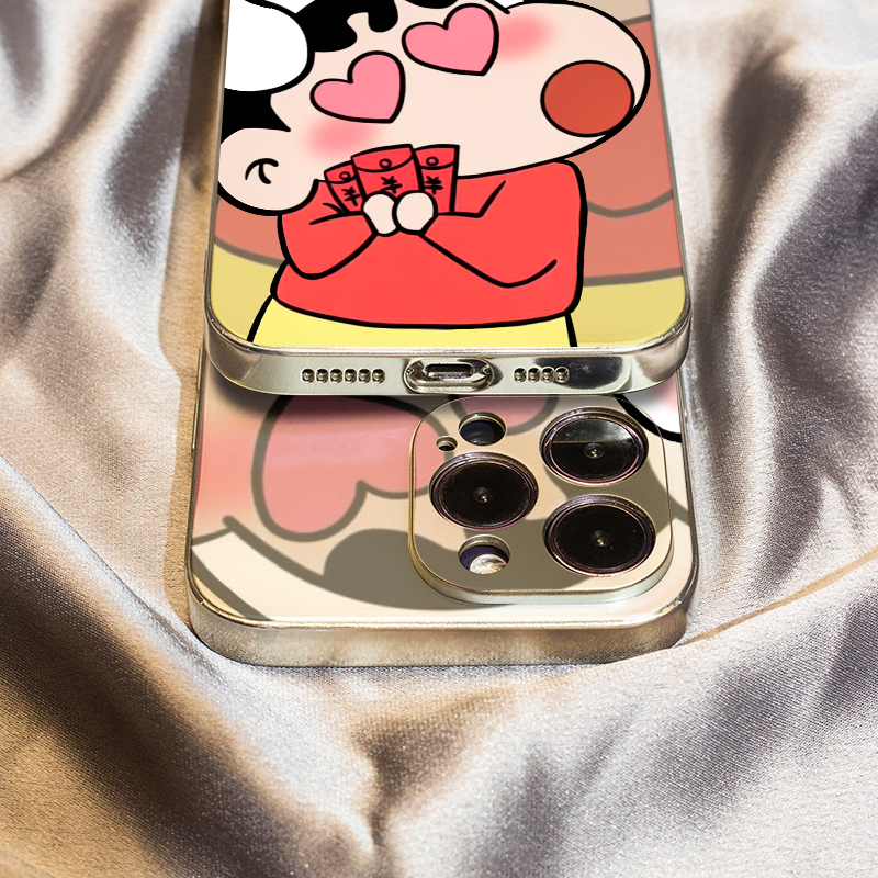 蜡笔小新适用苹果16保护套14plus电镀银iPhone15手机壳xs11全包xr情侣6s高级7g8新款12mini女se2软壳13promax
