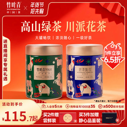 组合2罐】竹叶青绿茶红茶花茶茶叶新茶一级罐装100g*2自己喝散茶