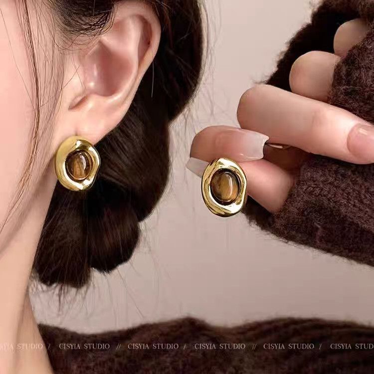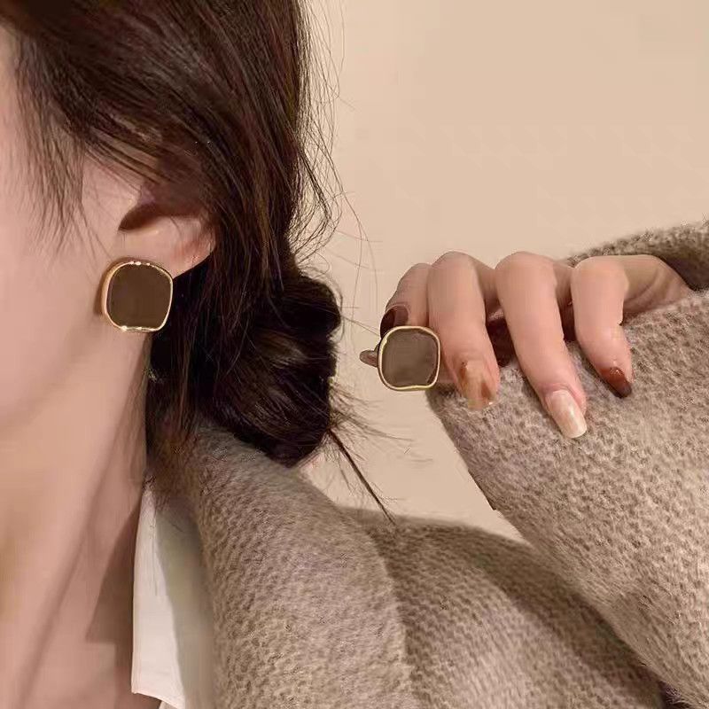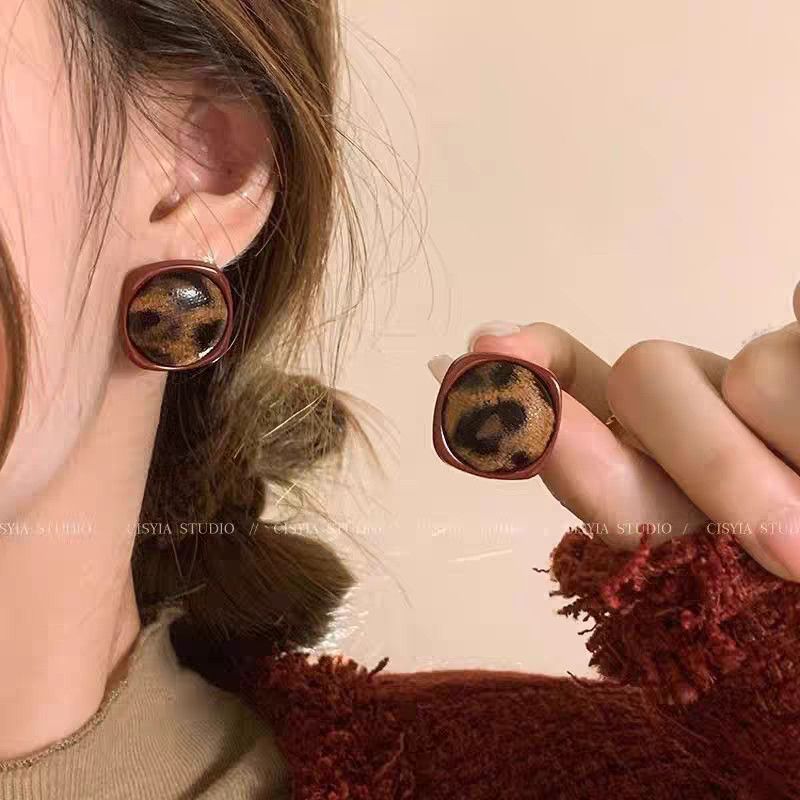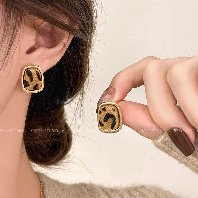 复古红色豹纹方形耳钉2025秋冬新款时尚百搭气质高级感无耳洞耳夹