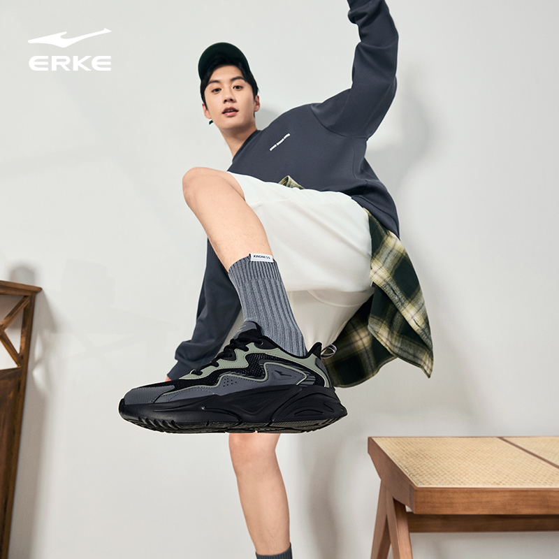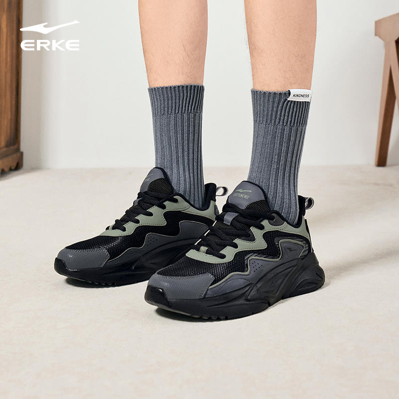 鸿星尔克川流2男鞋跑步鞋冬季新款百搭黑色鞋子轻便增高男运动鞋